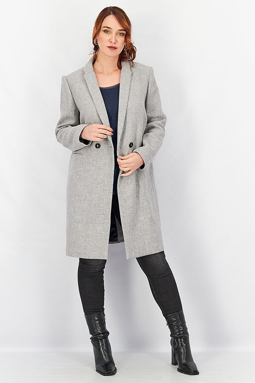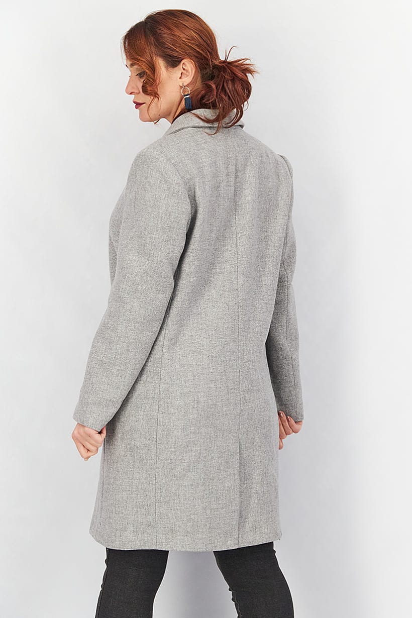 Care : Machine washable, Ideal For : Women, Jacket Style : Trench Coat, Size shown : US, Sleeve Length : Long Sleeve, Thickness : Light, Types of Hem : Slit hem, Types of Neckline & Collar : Notched collar, Fabrics : 62% Linen, 48% Polyester, Occasion : Casual, Pattern & Print : Textured pattern, Type of Sleeve : Long sleeve , Types of Closures : Button, Color Family : Grey, Type of Jackets : Coats,