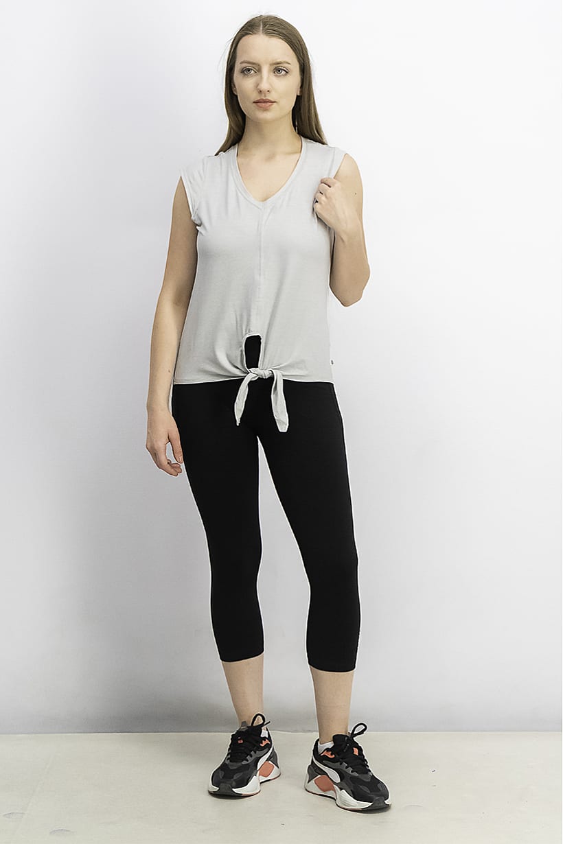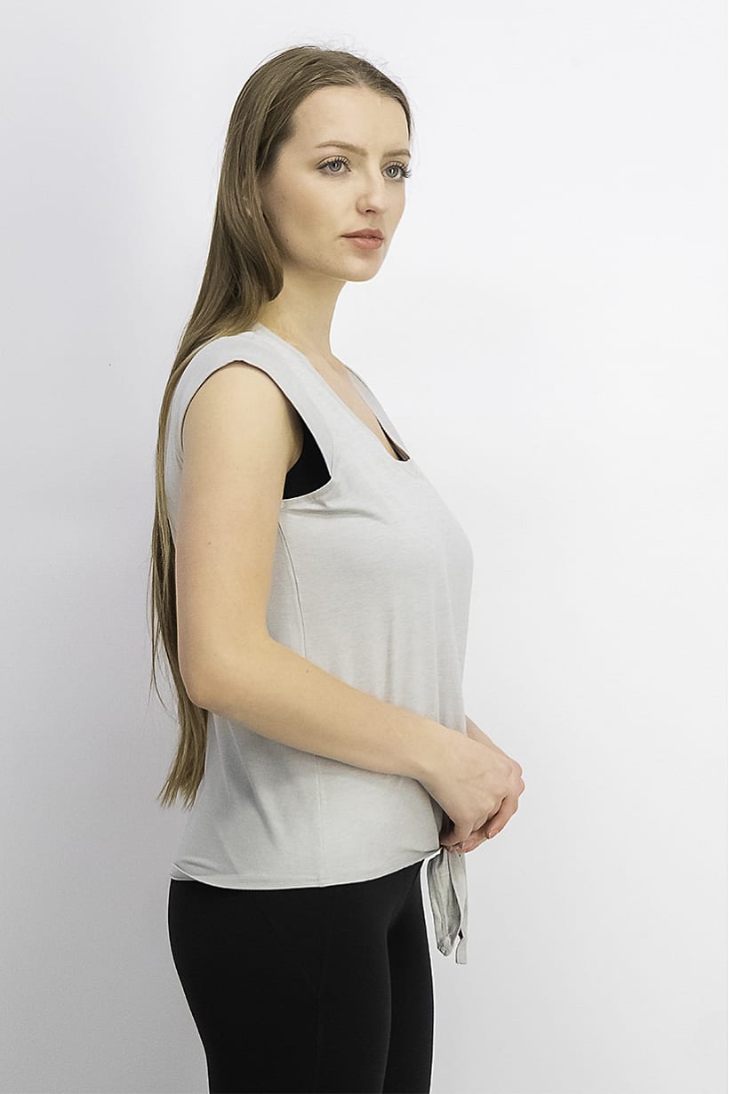 Grey Tie Hem Short Sleeve Top for Women’s Sports Fit.