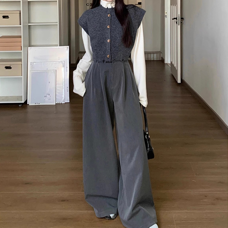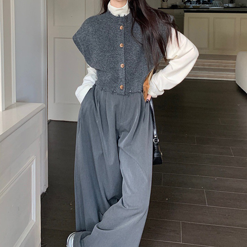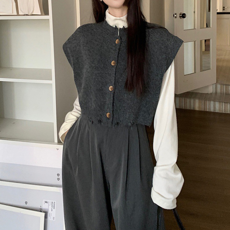 | nameOriginal | Grey trendy street style waistcoat sweater autumn and winter new fashion irregular burr stacked knitted vest for women |
