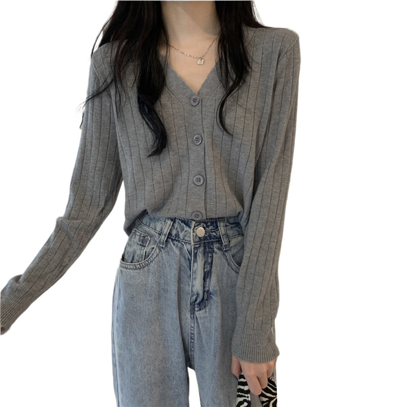 | nameOriginal | Grey V-Neck Sweater Spring and Autumn 2024 New Style Stylish Inner Jacket Loose Knitted Cardigan Jacket for Women |