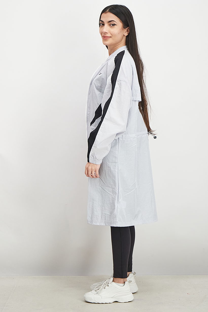 Bottom Hem : Straight, Care : Machine washable, Fit : Sportswear Fit, Ideal For : Women, Size shown : International, Sleeve Length : Long Sleeve, Thickness : Light, Type of Sport : Training, Types of Neckline & Collar : Mock neckline, Disclaimer : Product color may slightly vary due to photographic lighting sources or your monitor settings., Fabrics : 100% Polyester, Pattern & Print : Brand Logo, Sportswear Type : Jackets, Types of Closures : Zipper closure, Color Family : Grey,