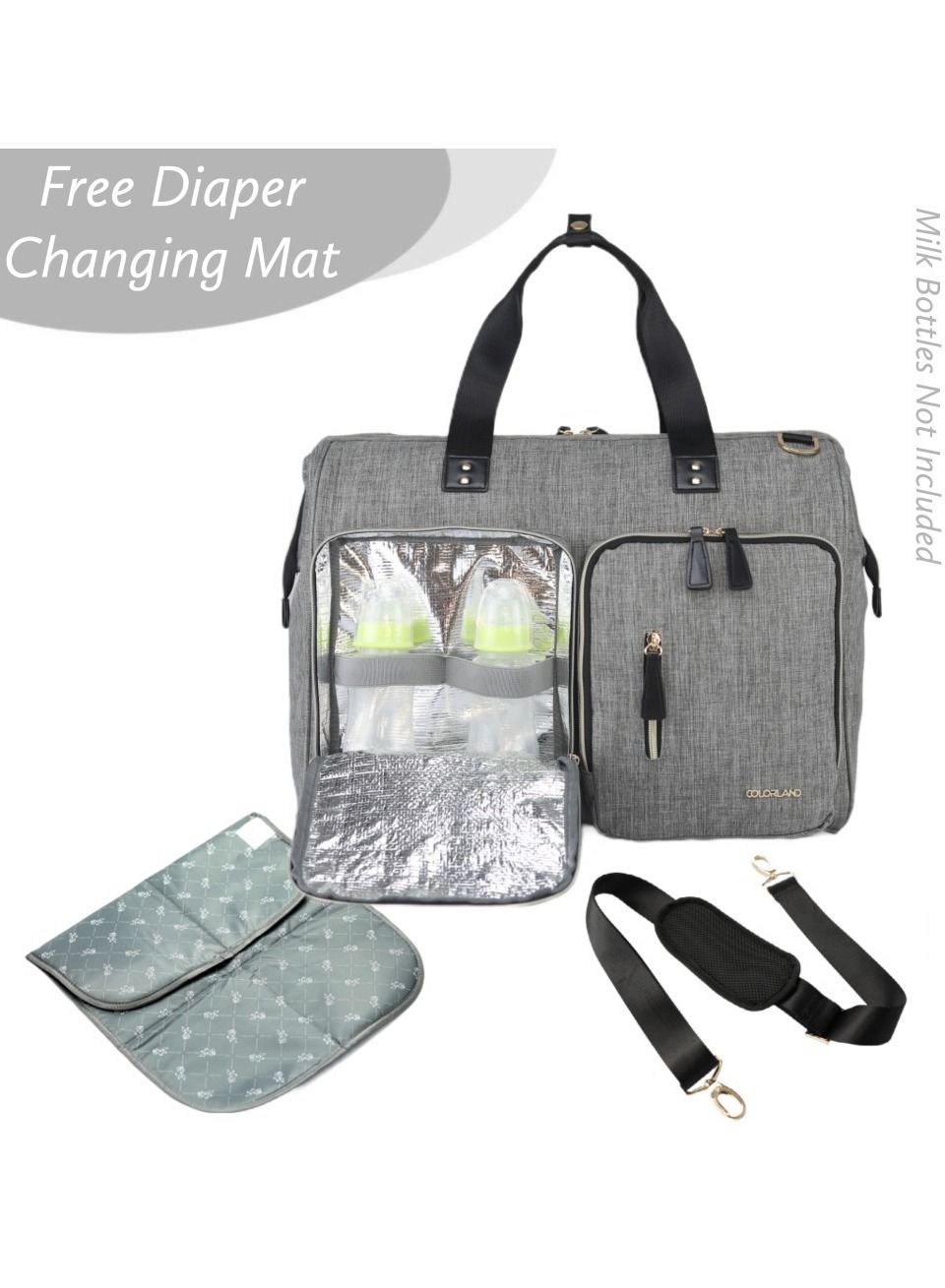 Gabrielle Mom Dad XL Travel Diaper Bag with Diaper Changing Mat- Grey