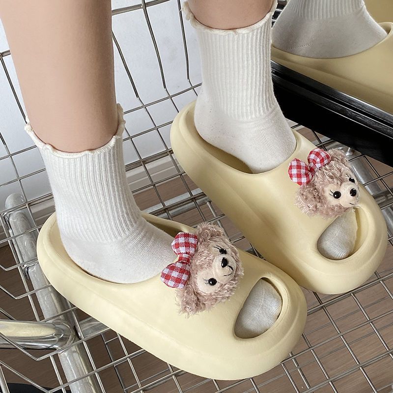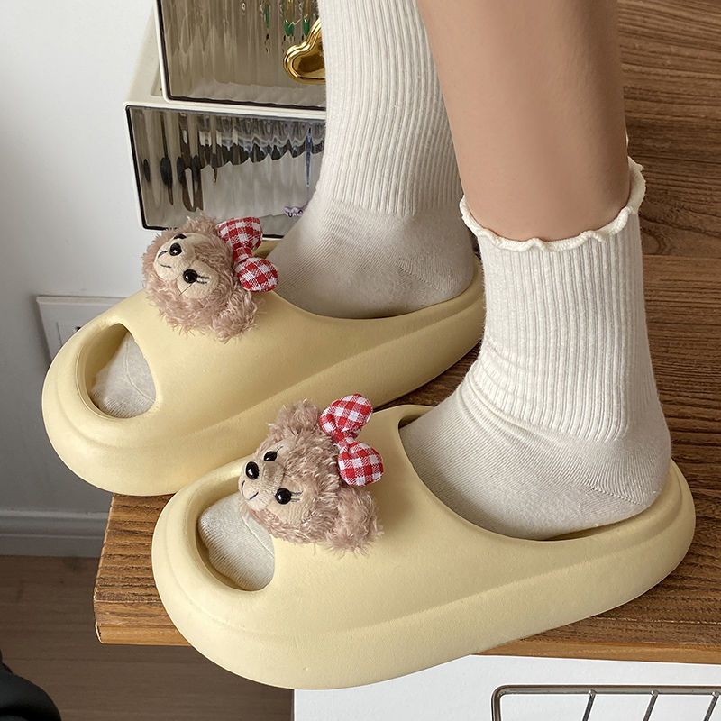 Grip Yu Plush Duffy Bear EVA Slippers Women's Outer Wear Summer Sandals Home Couple Non-Slip Deodorant Men's Slippers