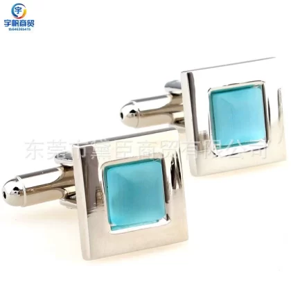 Guangdong cufflinks in stock, square blue, brown and yellow multi-color opal cufflinks, high quality French cufflinks and cufflinks