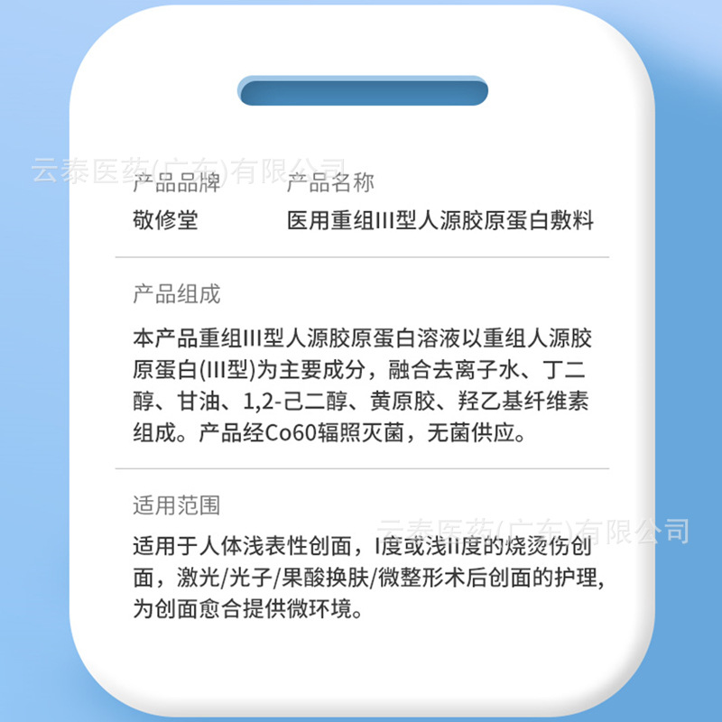 | nameOriginal | Guangyao Baiyunshan Jingxiu Tang medical recombinant type Ⅲ human collagen dressing postoperative wound care application |