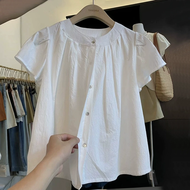 Guangzhou high-quality flying flies sleeves pleated slim and versatile shirt