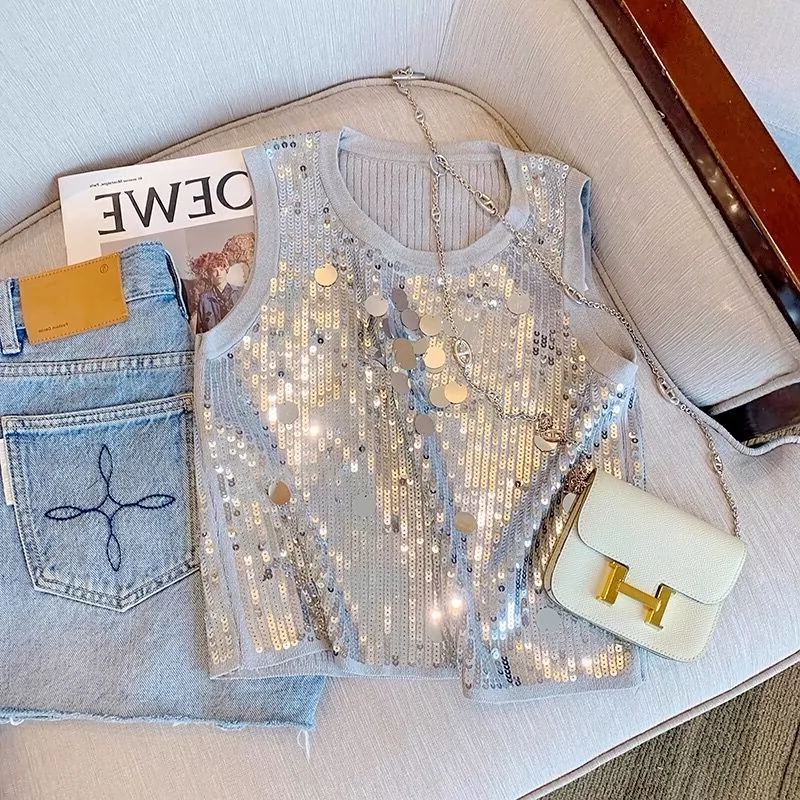 Guangzhou Thirteen Lines Heavy Industry Knitted Small Top Sequins