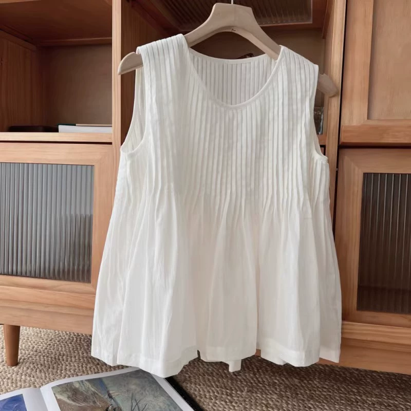 | nameOriginal | Guangzhou Thirteen Lines recommended popular products ~ Buyer store leaked white age-reducing pleated cotton and linen sleeveless vest for women |