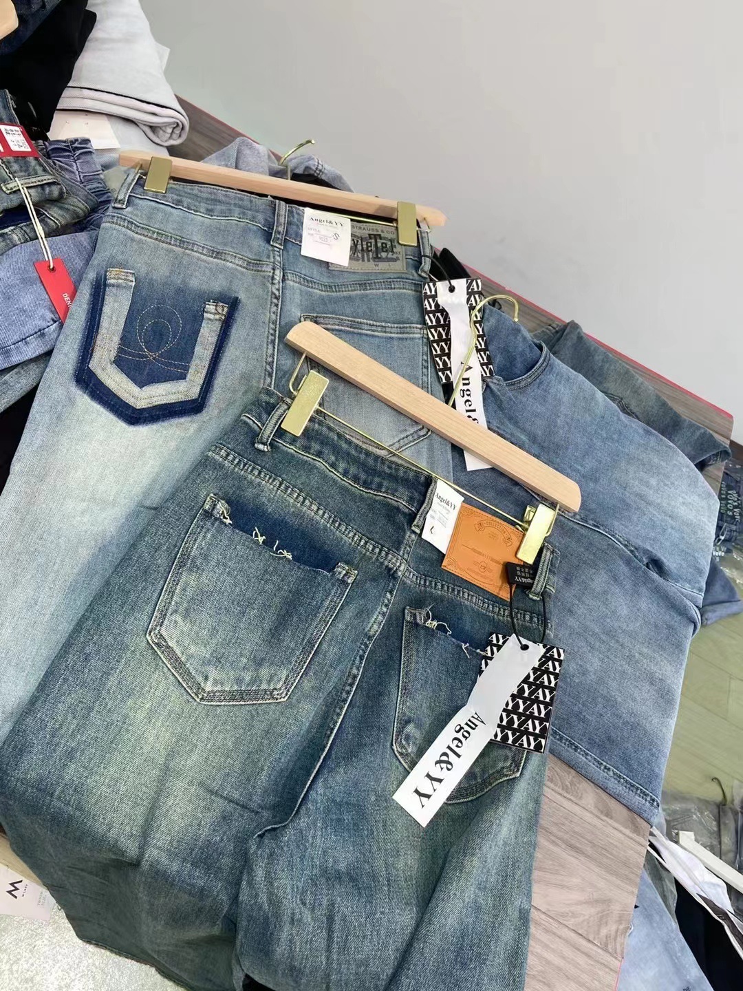 | nameOriginal | Guangzhou thirteen lines Shahe stalls jeans brand women's clothing live broadcast entity first-hand supply women's clothing wholesale supply |