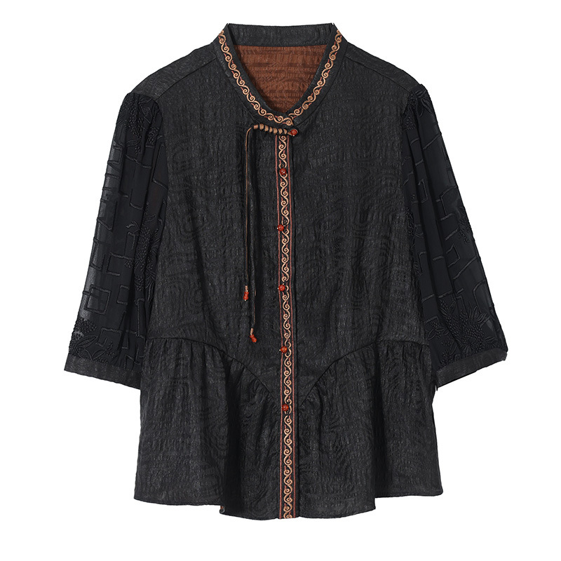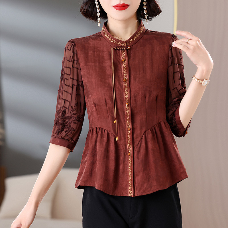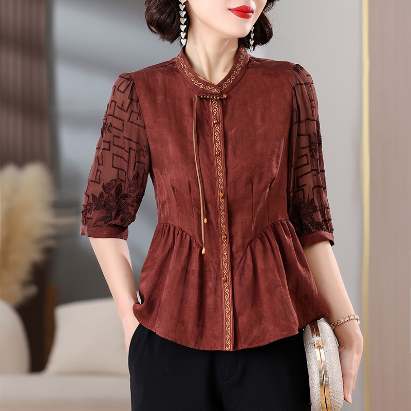 | nameOriginal | Guanle Crepe Xiangyun Yarn Tight Waist Top Women's Summer New High-end Brand Design Sense Silk Imitation Mulberry Silk Embroidery Small |