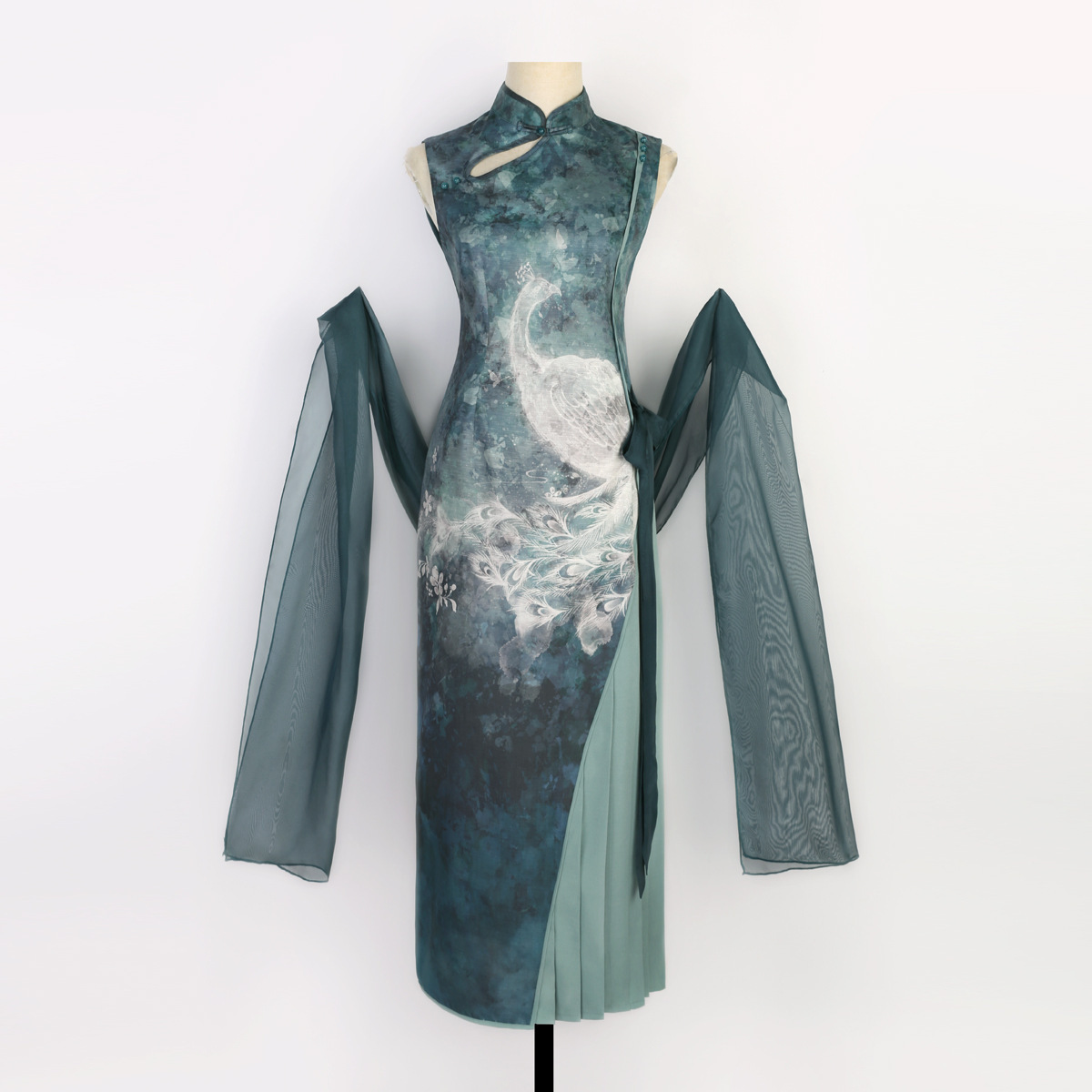| nameOriginal | Guannanqiao original design sparrow language new Chinese female national style daily silk cheongsam new suit X076 |