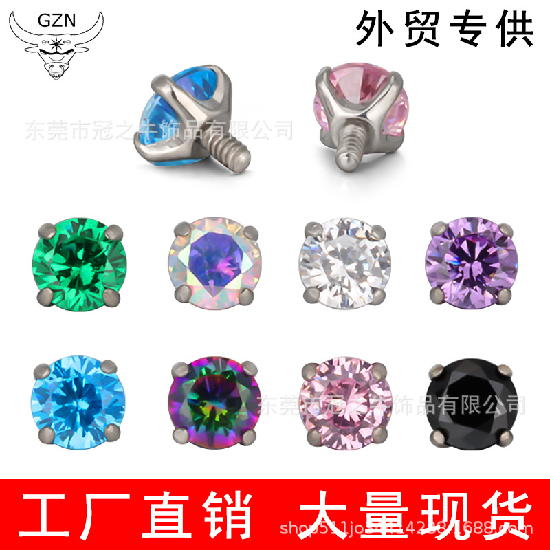 | nameOriginal | Guanzhiniu ASTM F-136 titanium internal thread ear bone nail accessories 5A zircon lip nail titanium alloy puncture jewelry |