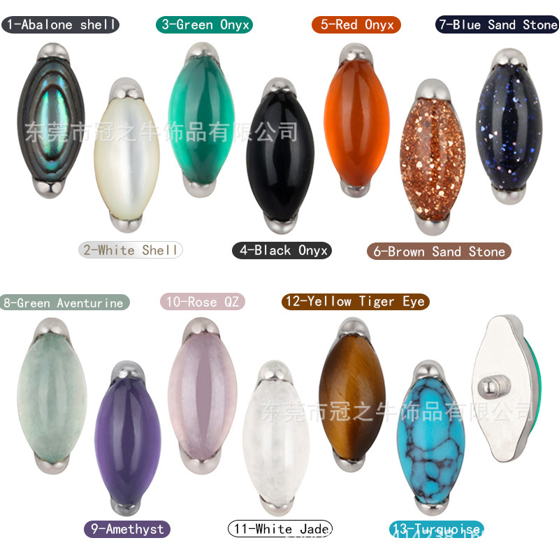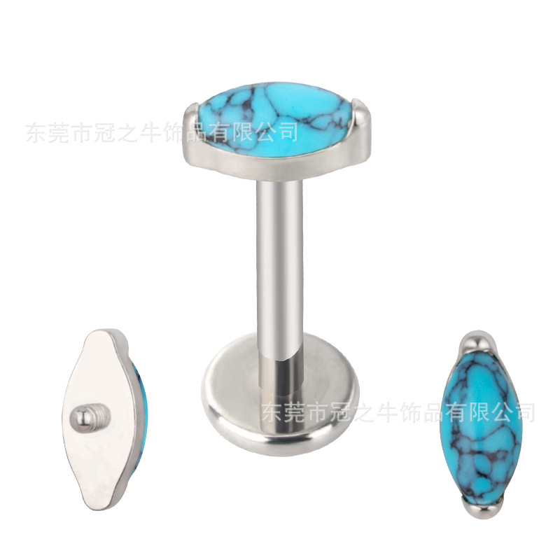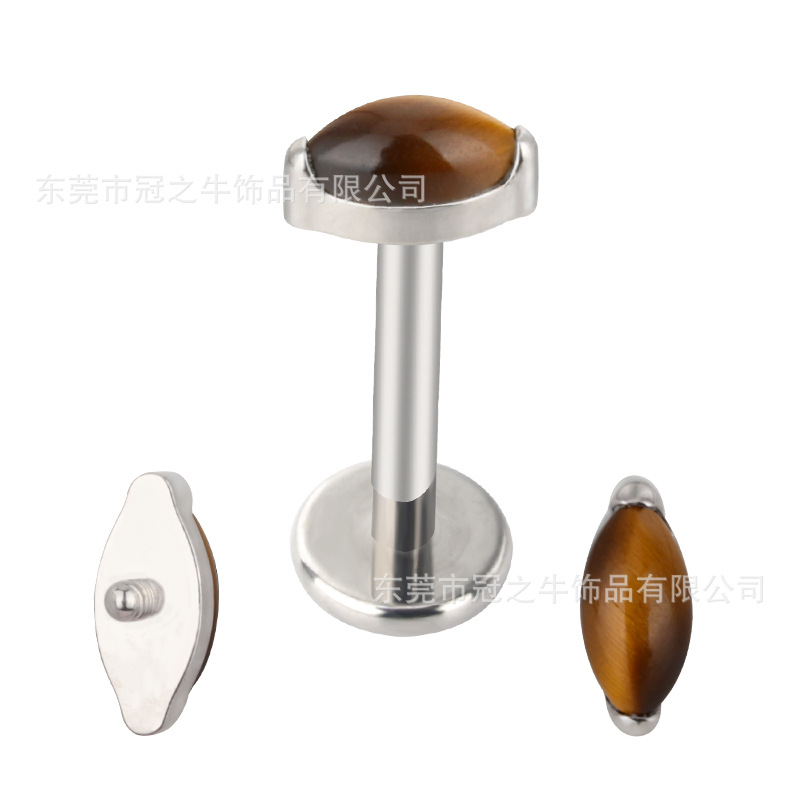 | nameOriginal | Guanzhiniu F136/G23 titanium natural stone horse eye piercing lip stud earrings foreign trade Hot Selling factory in stock wholesale |