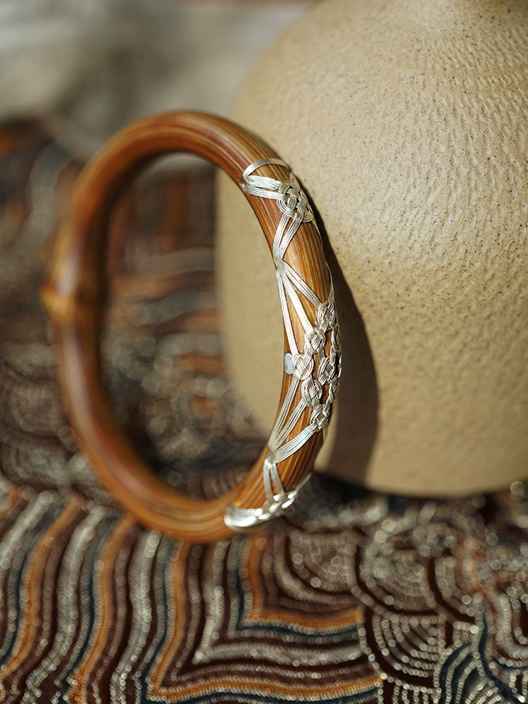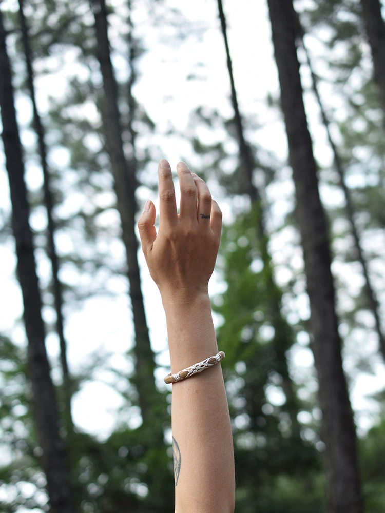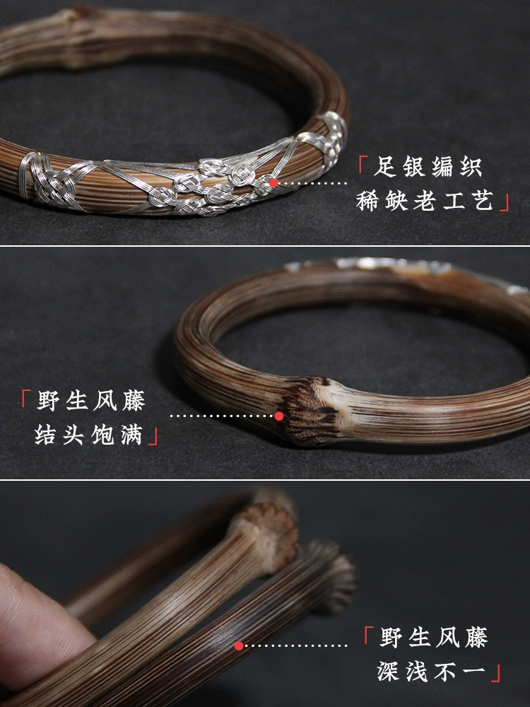 Guardian|Weishi natural wild medicinal wind rattan bracelet finely woven with pure silver wire retro traditional old handicraft for men and women
