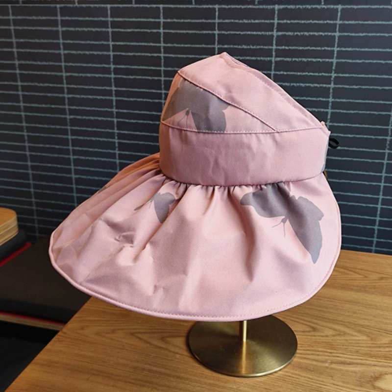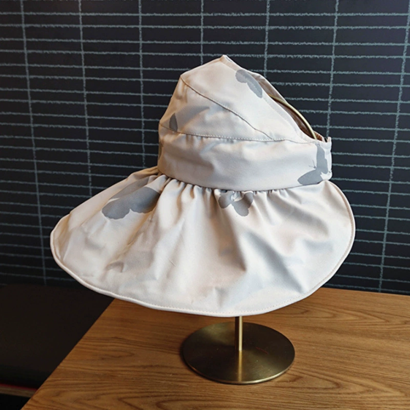 | nameOriginal | Gugu's same style folding vinyl sun protection hat with empty top, anti-UV, butterfly print, oversized brim to cover face and sun |