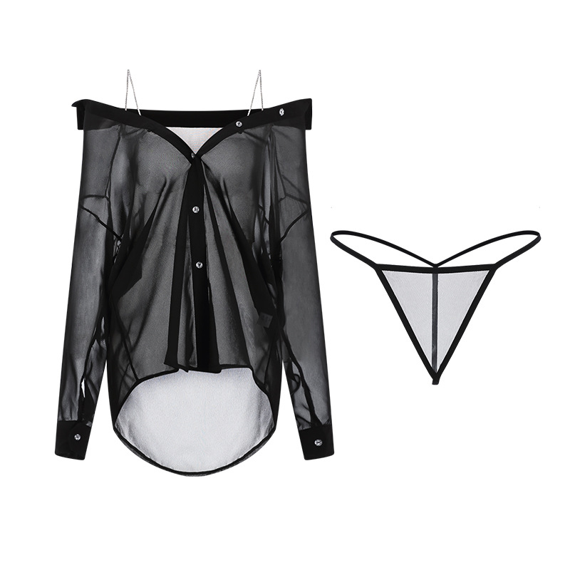 | nameOriginal | Guiruo Sex Underwear Sexy Perspective Chiffon Silk Smooth Boyfriend Shirt Nightdress Loose Pure Desire Uniform Set 2622 |