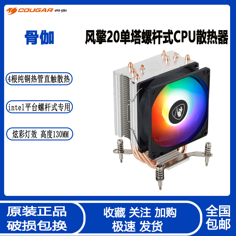 | nameOriginal | Gujia Feng Qing 20 desktop computer CPU radiator 4 heat pipe colorful mute temperature control tower CPU air-cooled fan |