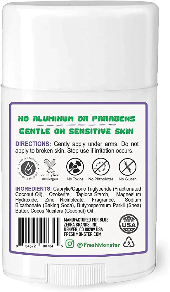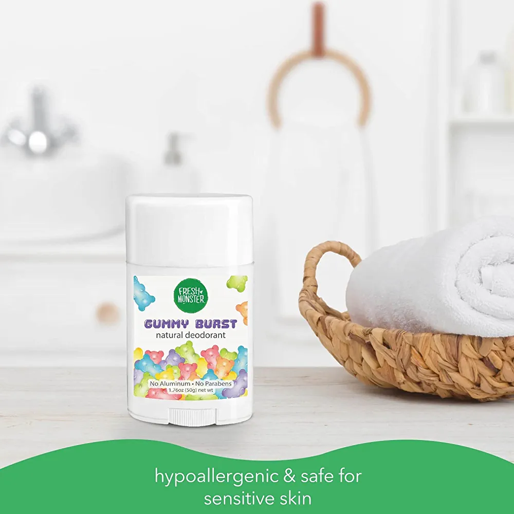 | nameOriginal | Fresh Monster Natural Deodorant for Kids & Teens, Aluminum Free, Paraben Free, Hypoallergenic Deodorant, Gummy Burst (1.76oz) |