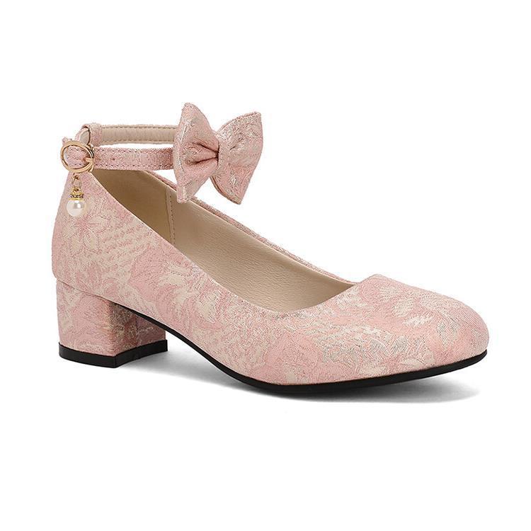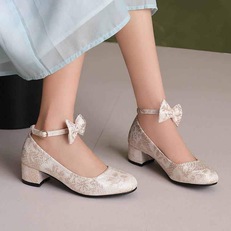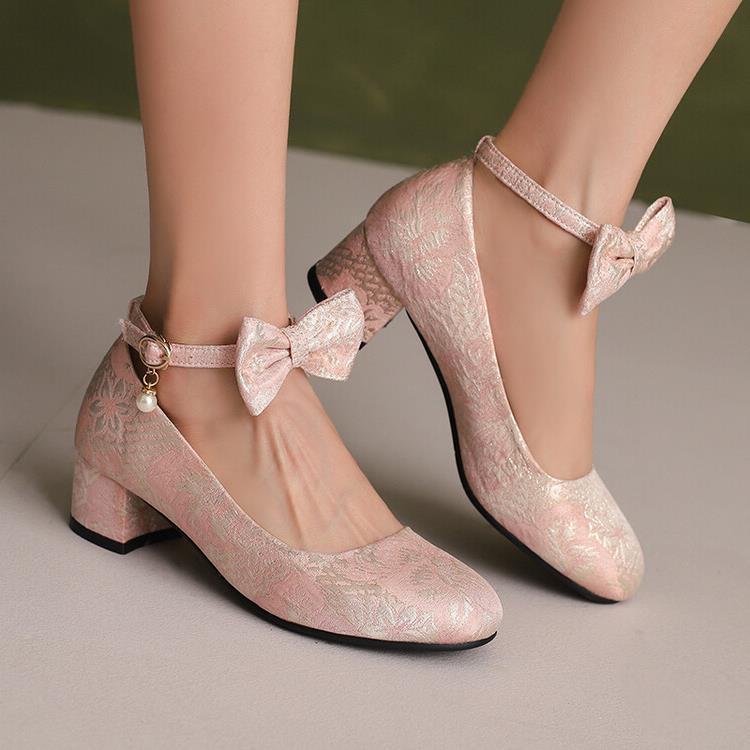 | nameOriginal | Guofeng antique round head thick heel mid heel single shoes women Mary Jane shoes beige blue pink plus size small size shoes HDL |