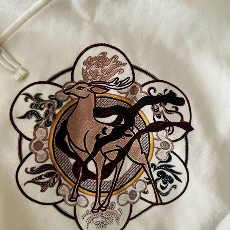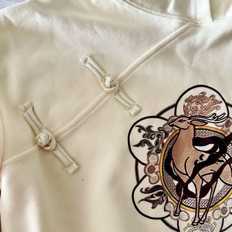 Guofeng Deer Stylike Spring and Autumn Girls Hooded Ins Printed Sweat 2024