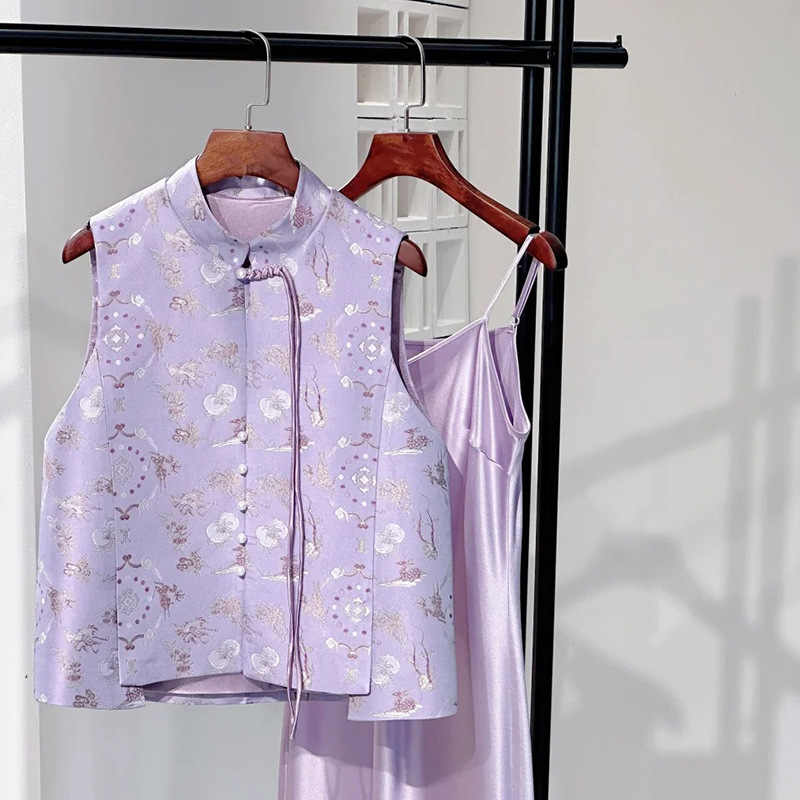 Guofeng New Chinese Style Light Luxury Printed Design Feeling Buckle Vest High Feeling Elegant Loose Slimming Top M6067