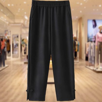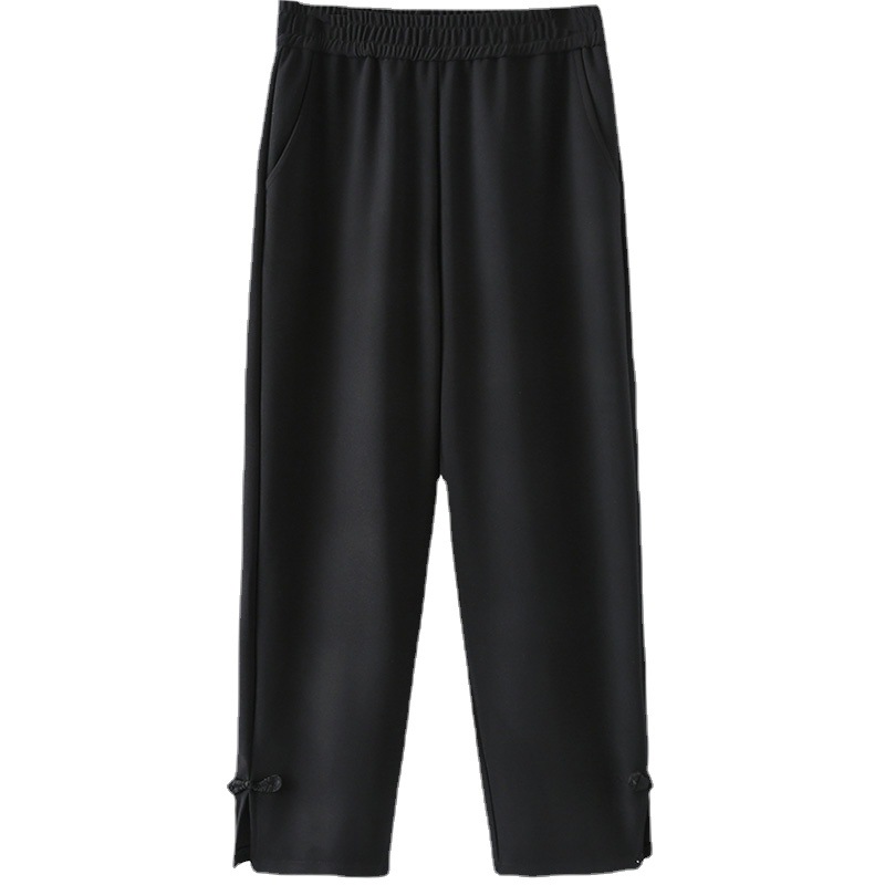 Guofeng Pants Foot Buckle Cigarette Tube Pants Women’s Spring and Summer Thin plus size Middle-aged Mother Pants High Waist Casual Ankle-length Pants