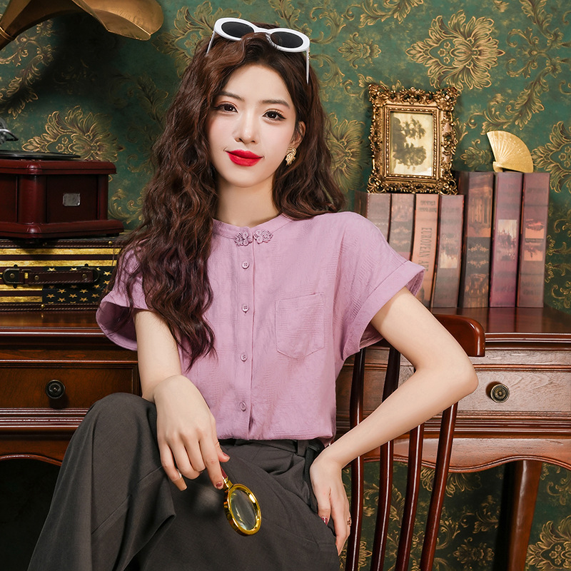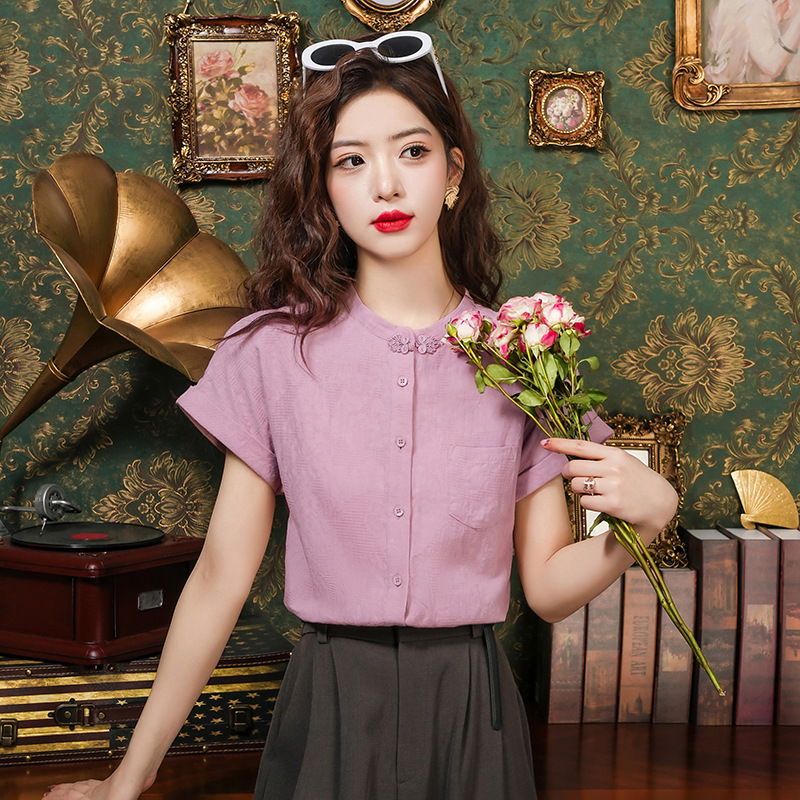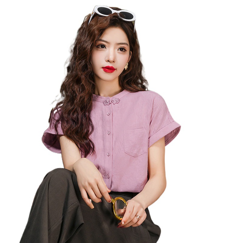 | nameOriginal | Guofeng Retro Button Age-reducing Top 2024 Summer New High-end Artistic Elegant Lotus Root Starch Color All-match Shirt |
