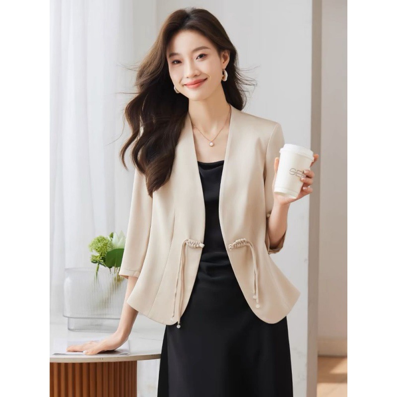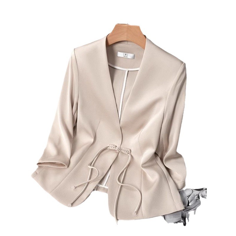 | nameOriginal | Guofeng Suit Jacket Seven-point Sleeve Two-piece Set New Chinese-style Buckle Top Women's Acetic Acid Satin Thin Small Suit |