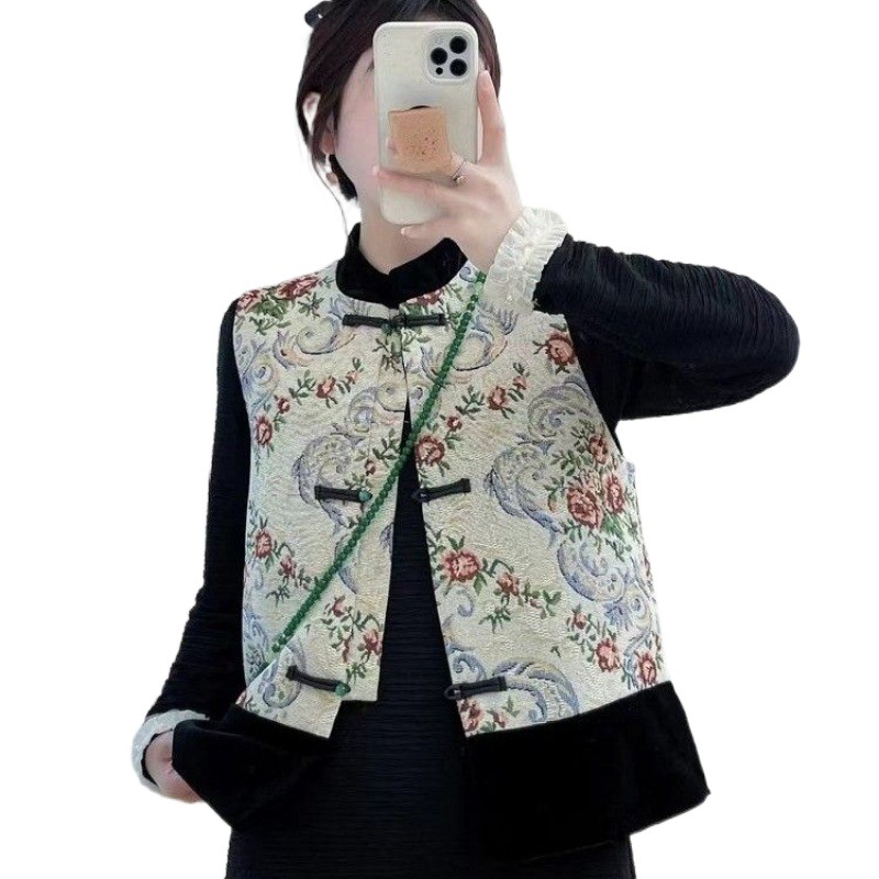 Guofeng Vest Women's Spring New China Ink Vest 2024 Spring and Autumn New Vintage All-match Clip Jacket
