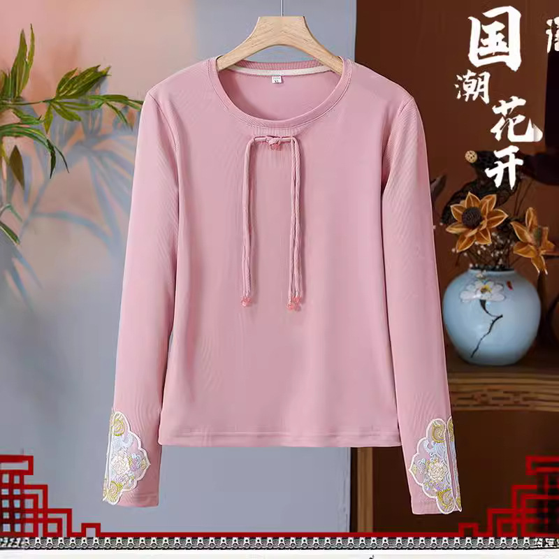 Guofeng Vintage Tang Suit Women’s Base Shirt Chinese Lace Embroidered Pullover Top Old Money Style Tassel Button Clothes