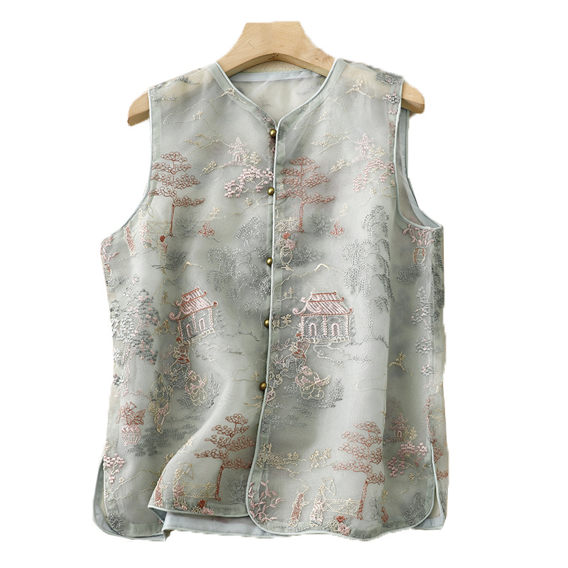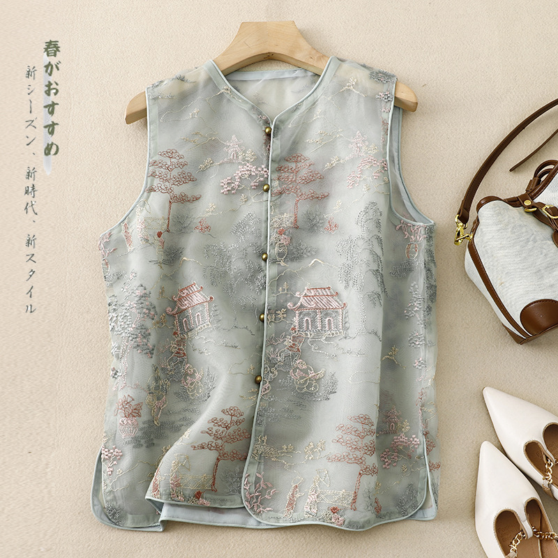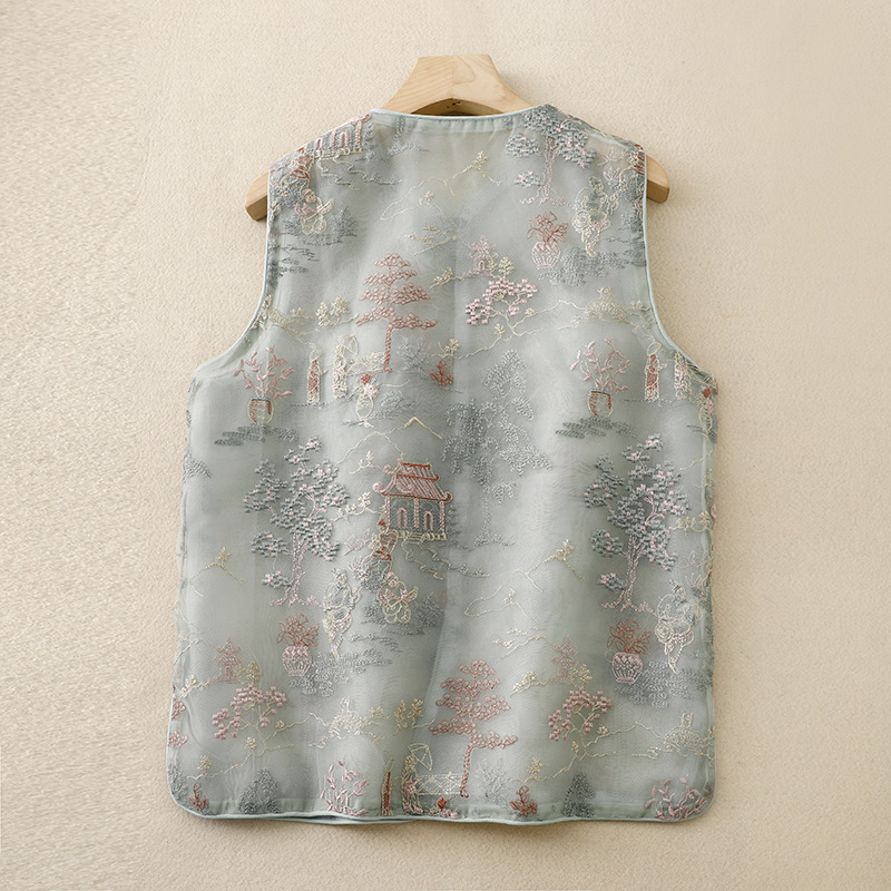 | nameOriginal | Guofeng waistcoat short vest 2024 Chinese vintage organza heavy-work embroidery round neck waistcoat |