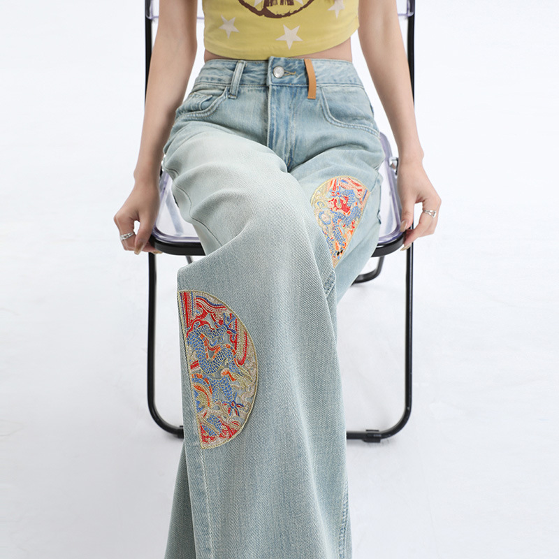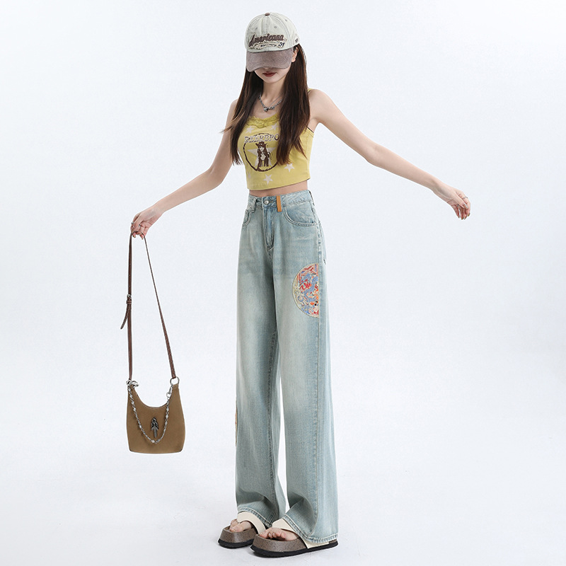 | nameOriginal | Guofeng Wide-leg Jeans Women's New 2024 Spring American-style Narrow-style Straight Loose Slimming Hanging Pants |