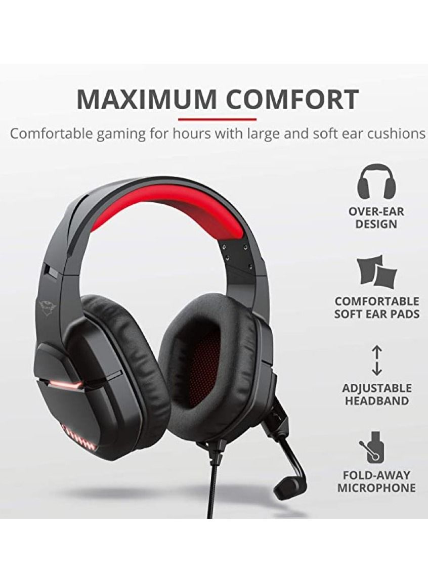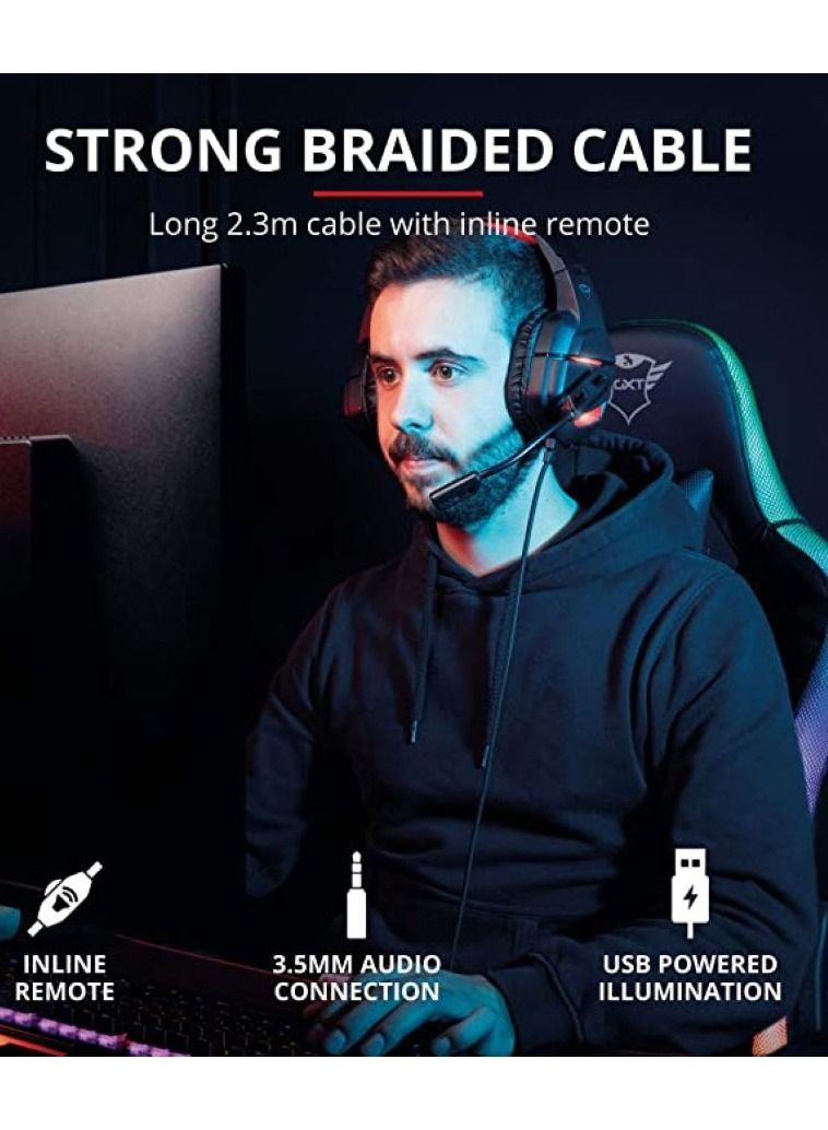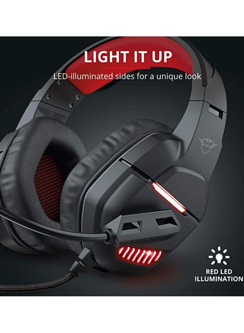Trust Gaming Headset for PC/Laptop GXT 448 Nixxo LED illuminated Headset with Mic Soft Comfortable Over-Ear Cushions Fold-away Flexible Microphone USB 3.5 mm Jack Black