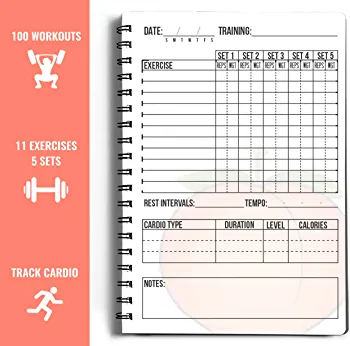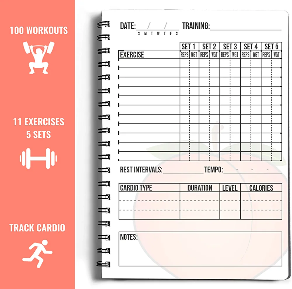 💪 TRACK EVERY WORKOUT – Never forget what you did in your last workout again. The Workout Log allows you to record up to 100 workouts, with space for 11 exercises per session. Each workout has its own page, allowing you to record your tempo, rest intervals, and cardio, ensuring you capture every detail of your training.