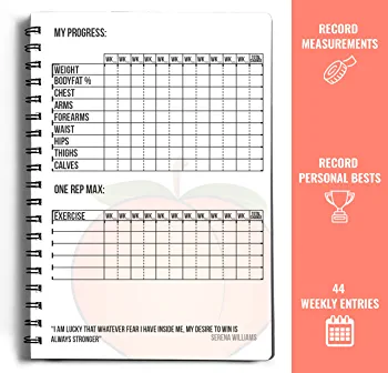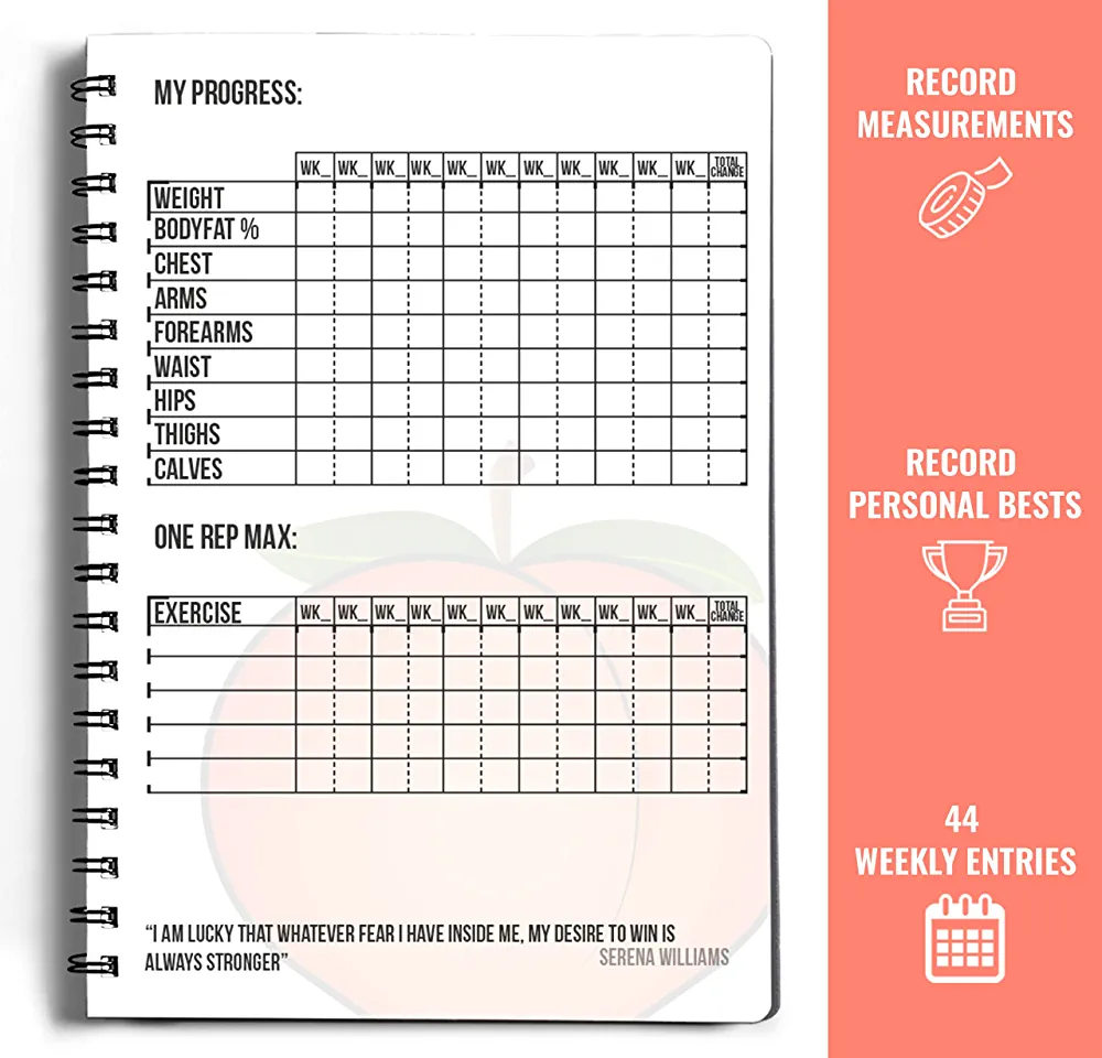 🏆 MONITOR YOUR PROGRESS – Keep track of your bodyweight, body measurements, and personal bests with 2 dedicated pages. This allows you to look back and see how far you’ve come, boosting your motivation and helping you make the right changes to optimize your training and nutrition.