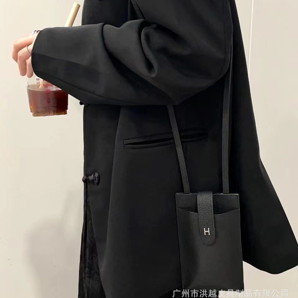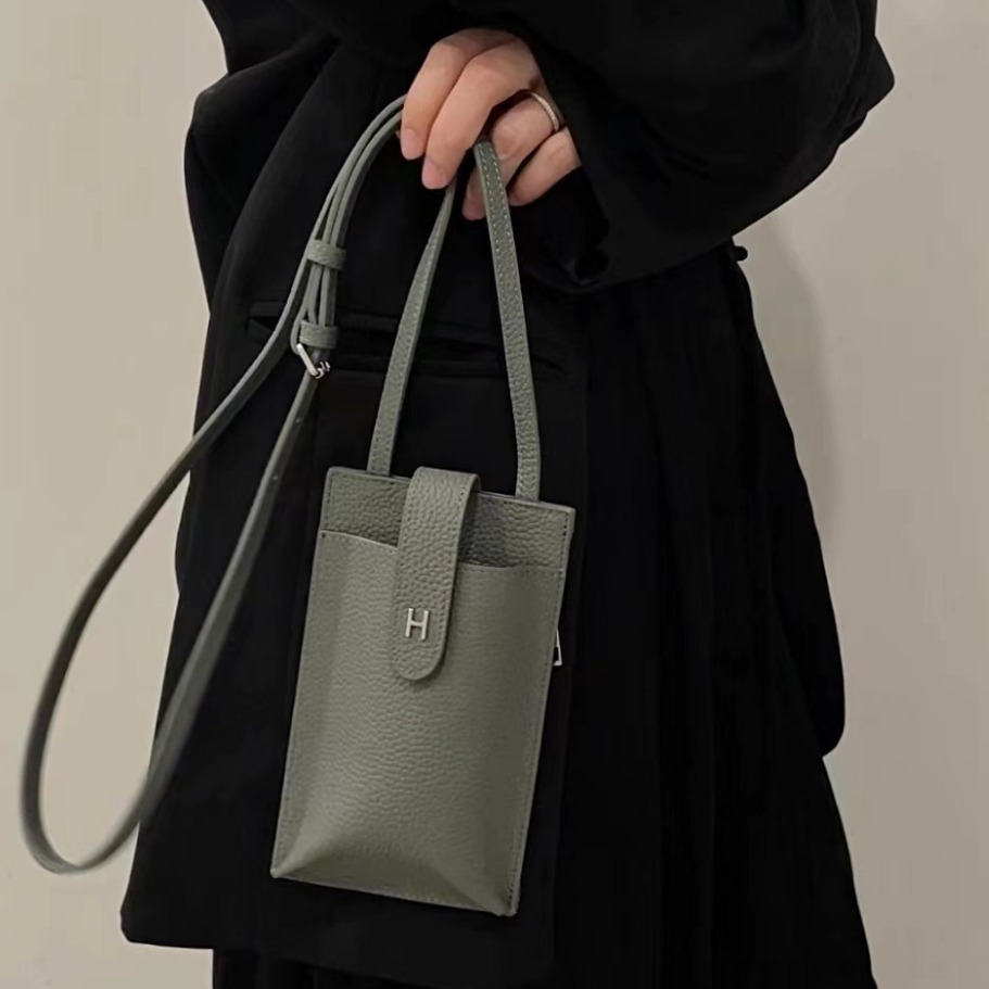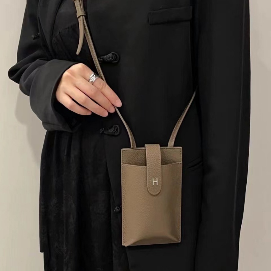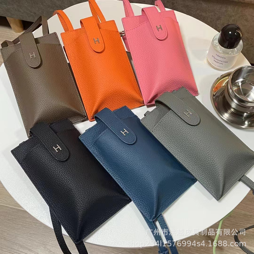 | nameOriginal | H genuine leather large litchi pattern mobile phone coin purse Japanese and Korean new crossbody vertical simple mini single shoulder mobile phone bag |
