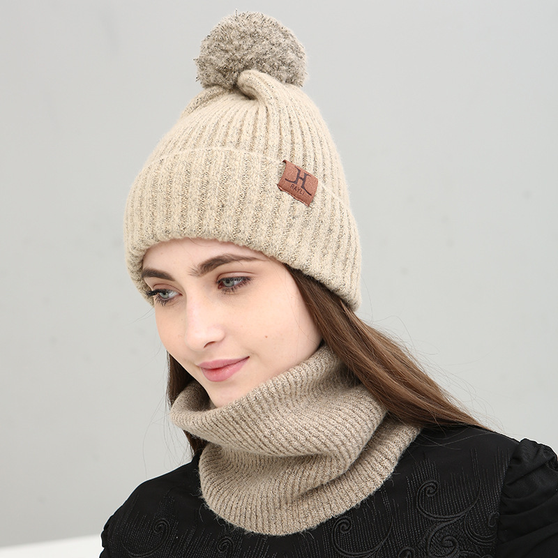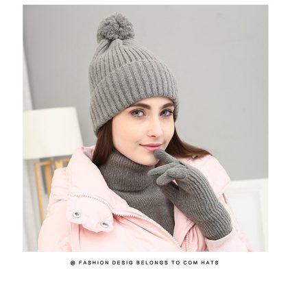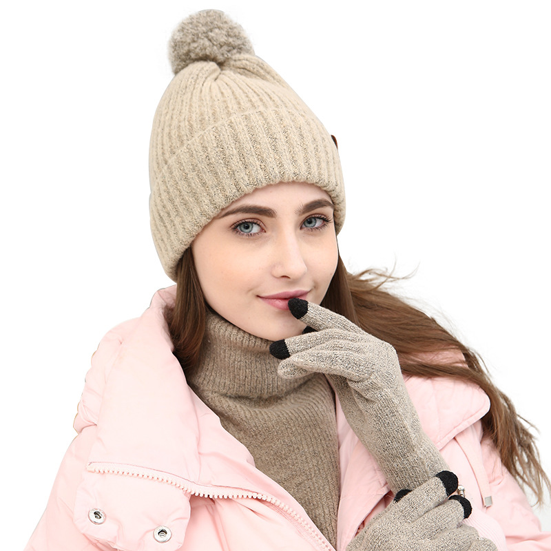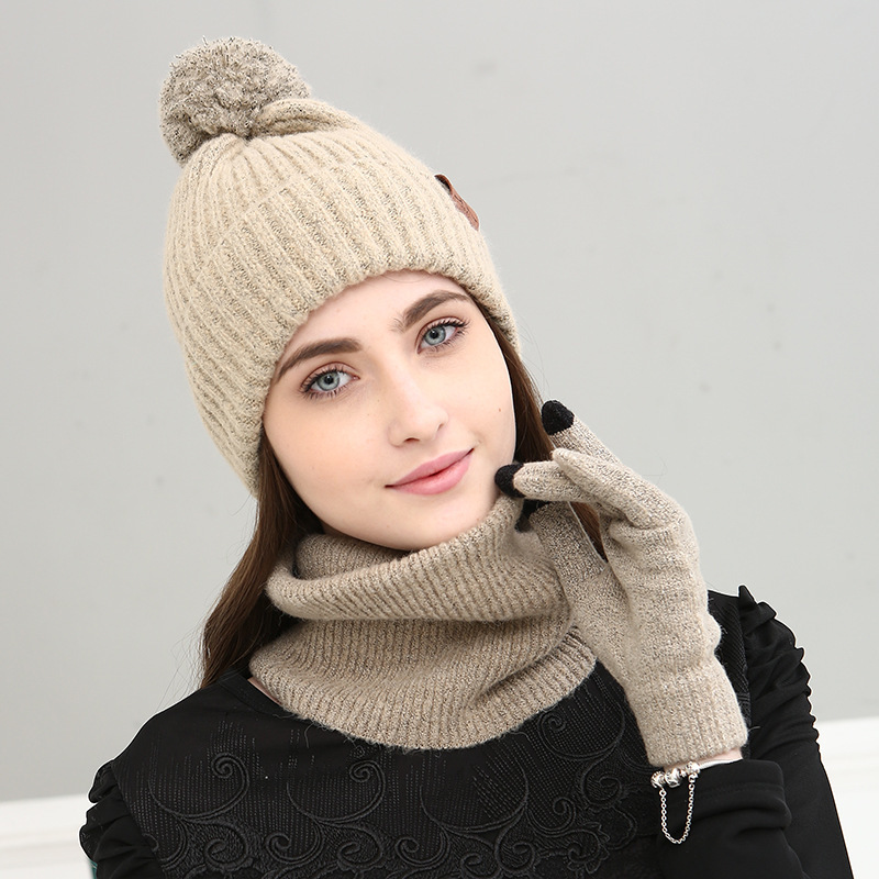 H Korean version of the new fashion knitted three-piece solid color warm wool hat scarf touch screen gloves set gift