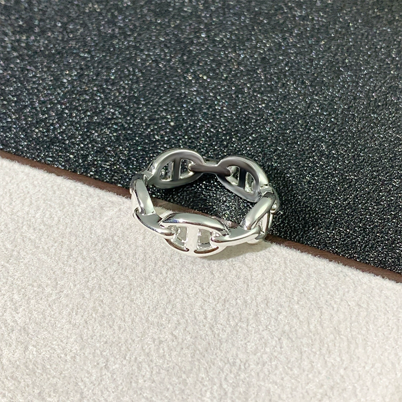 H pig nose ring women's sterling silver vegetarian ring index finger men's and women's couple rings simple ring internet celebrity high-end sense ins