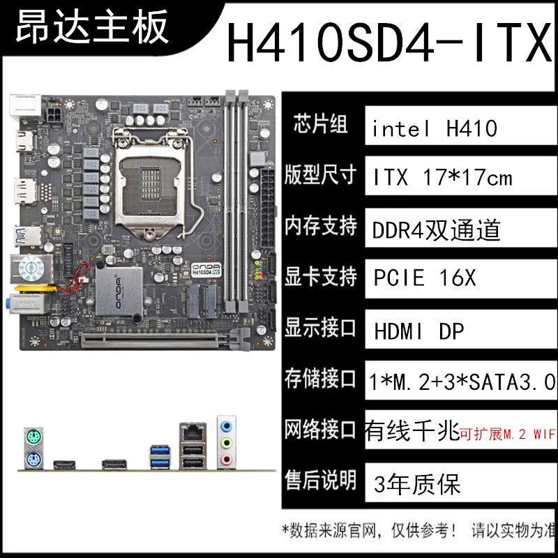 | nameOriginal | H410 B460 ITX motherboard tenth generation 1200-pin DP HDMI 4K interface Onda H410SD4-ITX |