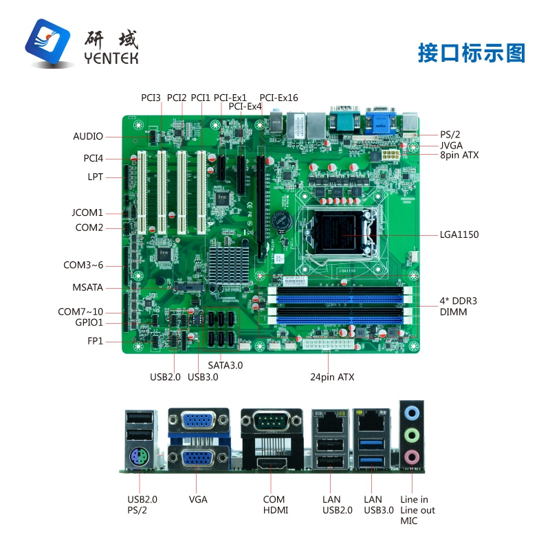 H87DM Yanyu ATX industrial control motherboard 1150 server Z87 dual network PCI/PCIE industrial computer computer 5SATA