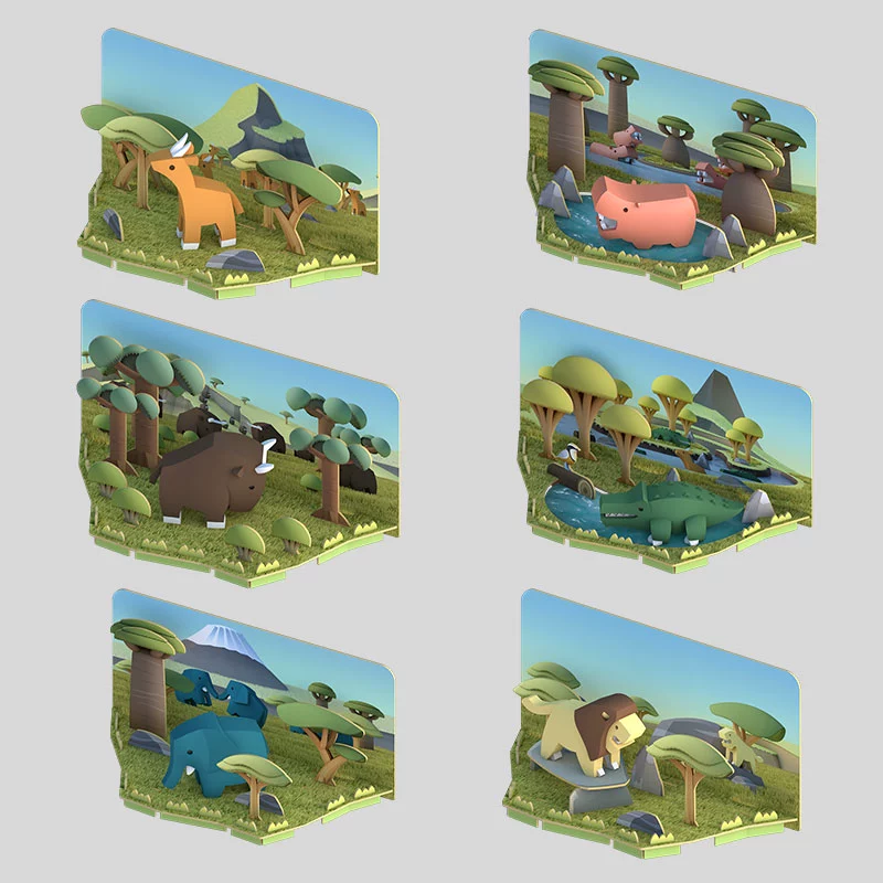 Hafu forest animal magnetic building blocks African lion crocodile children’s educational assembly skeleton model ornaments