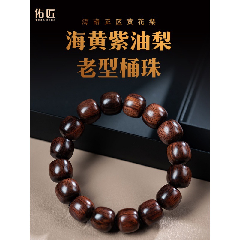 | nameOriginal | Hainan Huanghua Pear Bracelet Haihuang Purple Oil Pear Tibetan Barrel Bead Bracelet Old Material Buddha Bead Wen Play Handpiece for Men and Women |