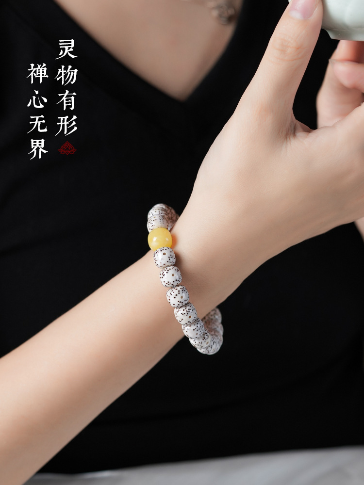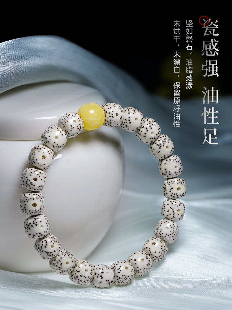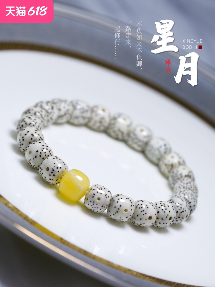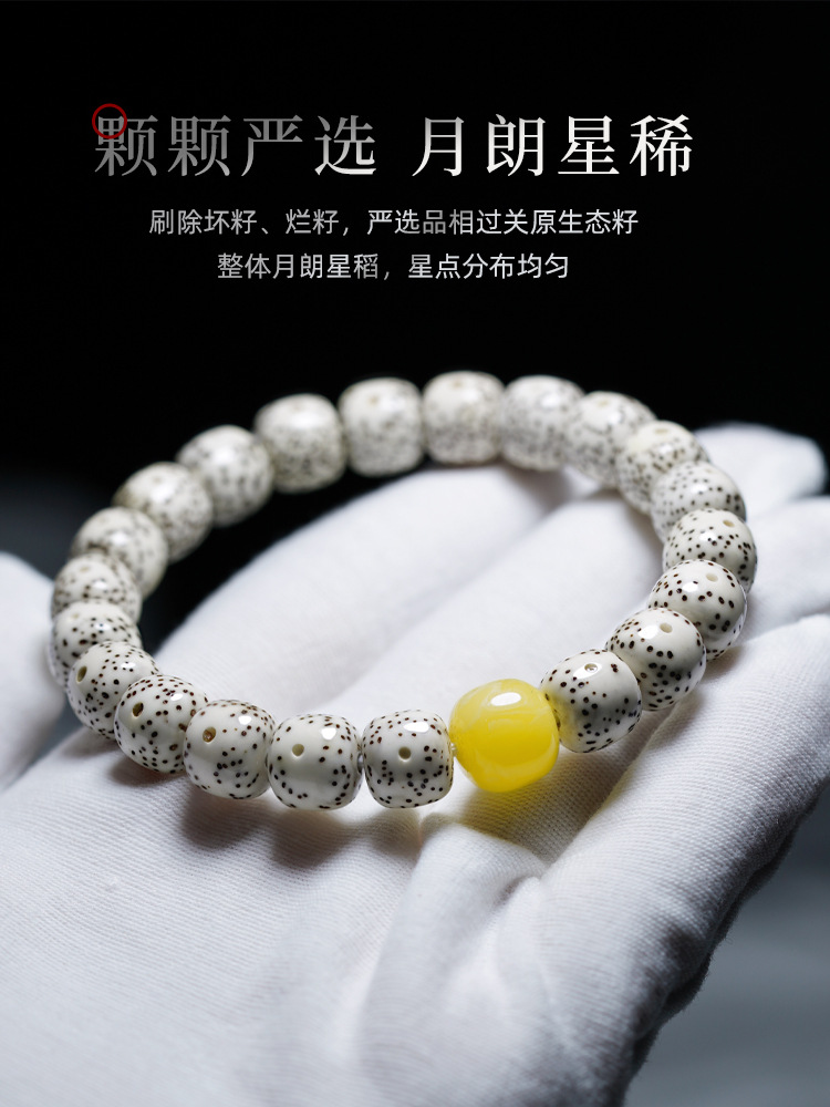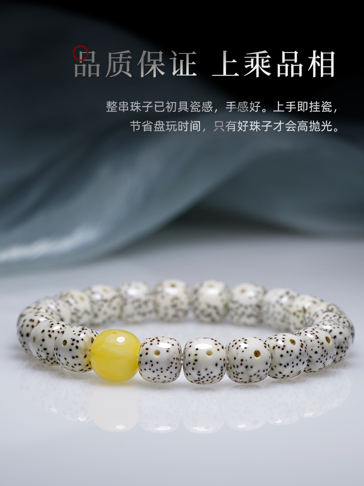 Hainan Xingyue Bodhi Bracelet Real Beeswax Stone Jade Material Original Ecology High Density Cultural Play genuine goods Large White Bracelet