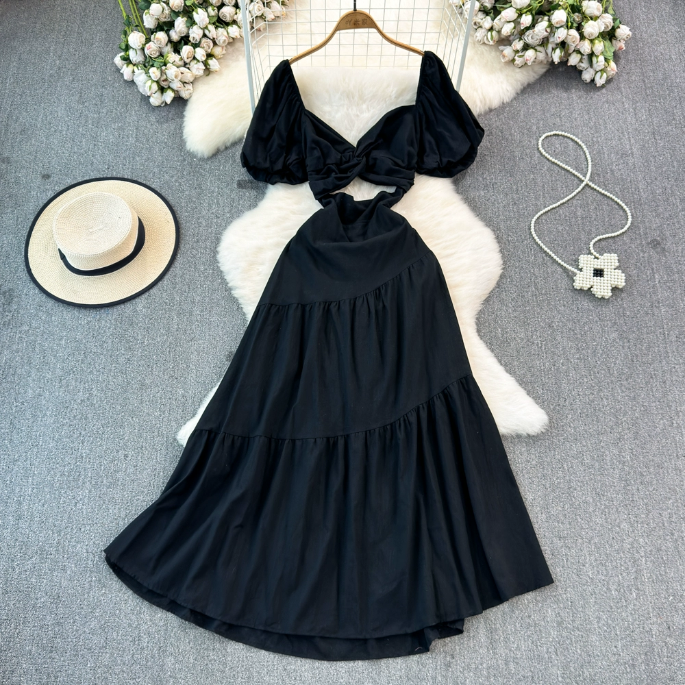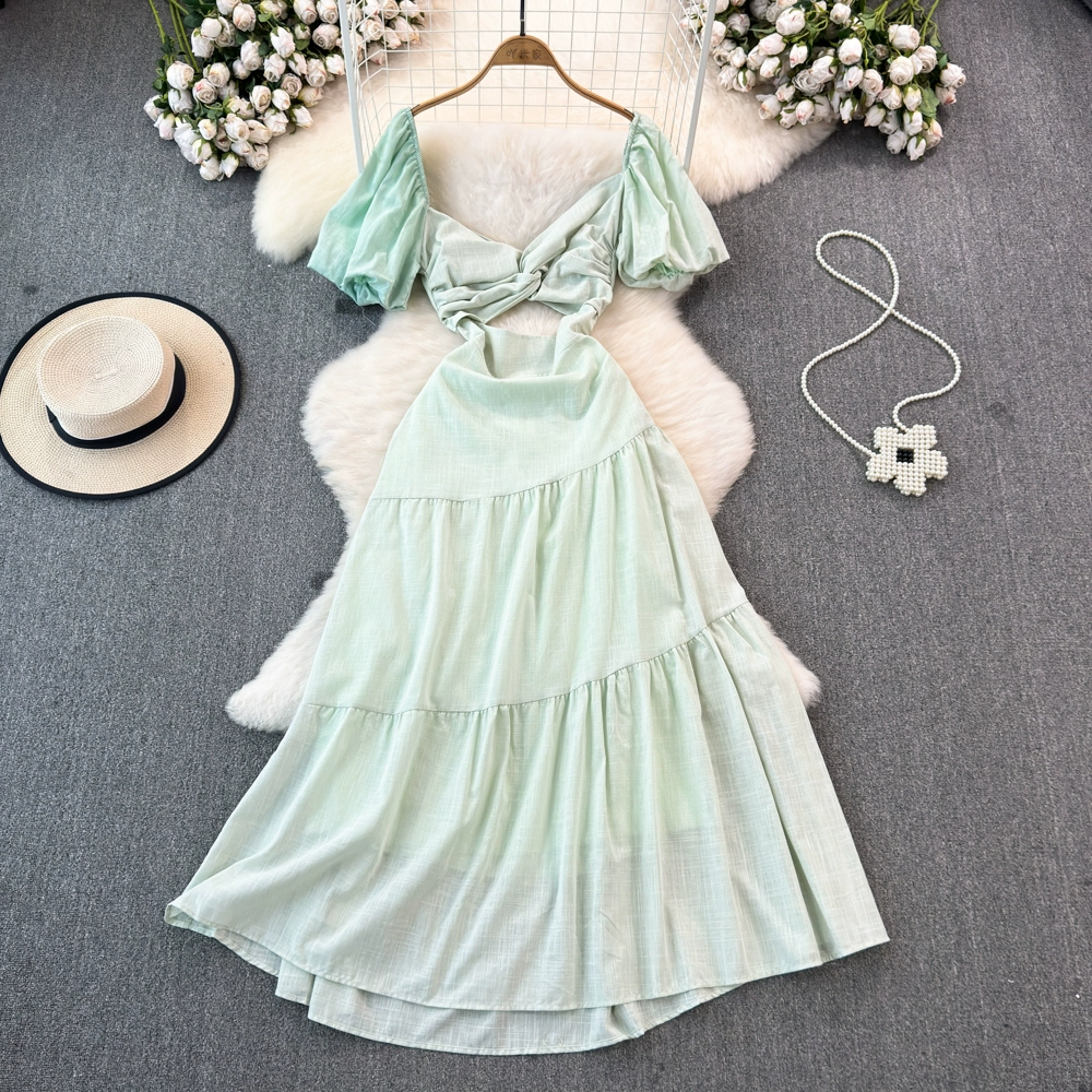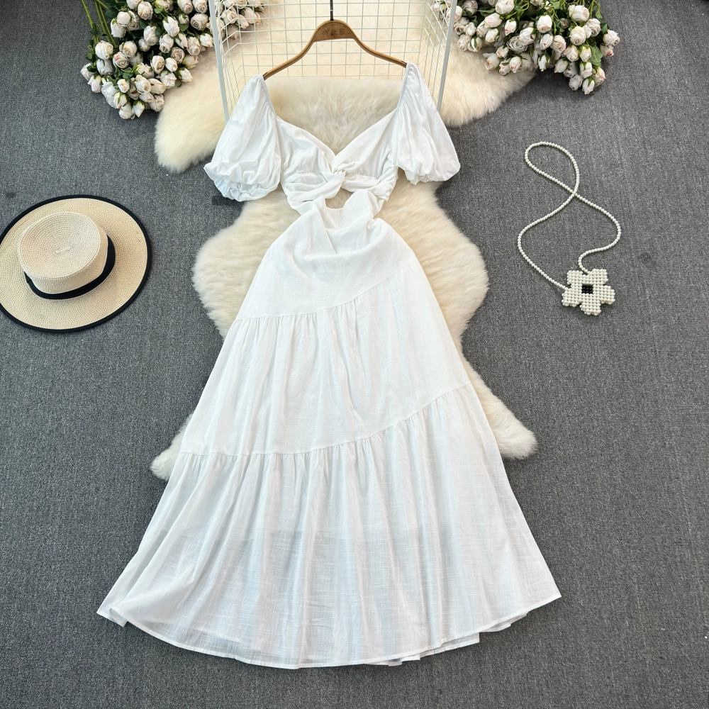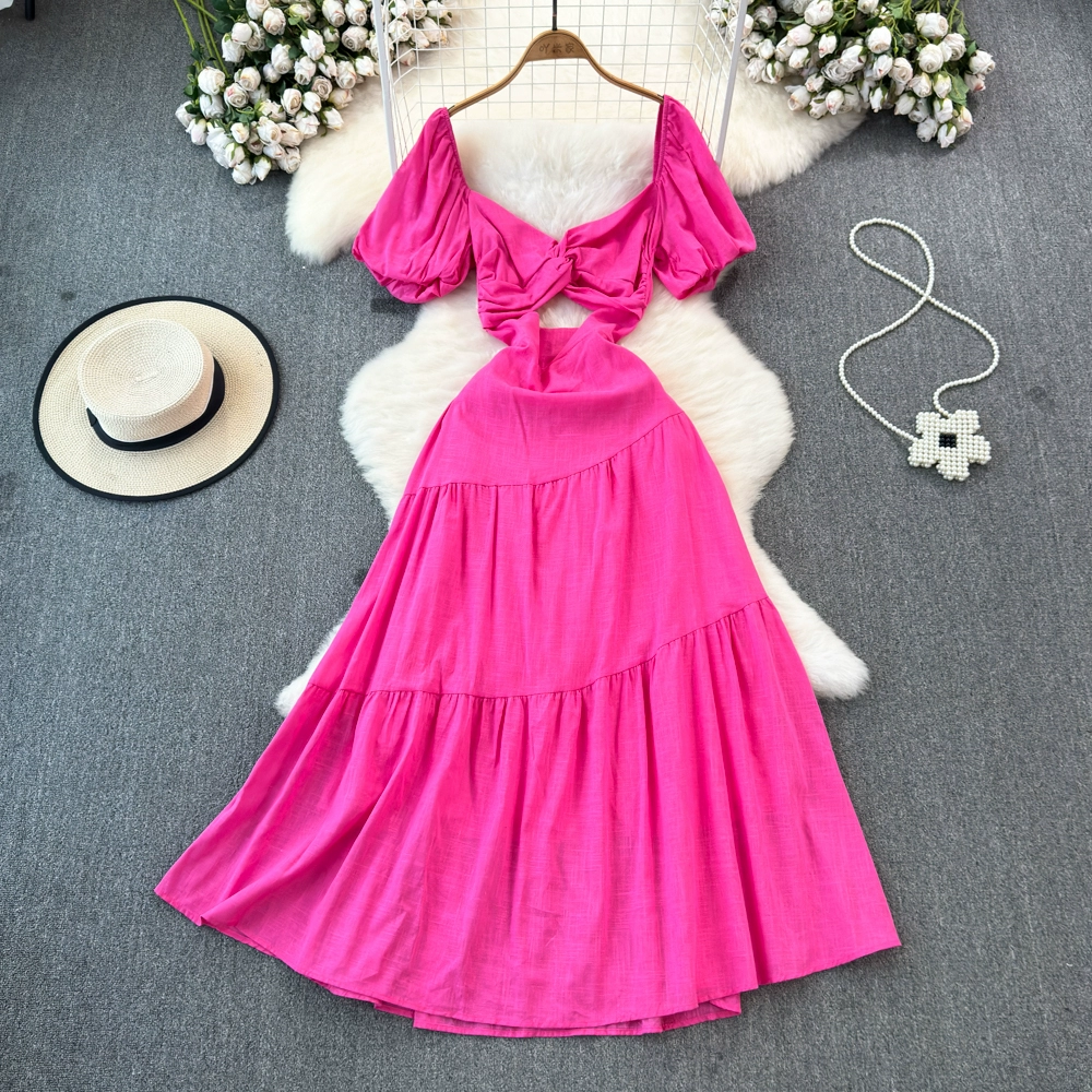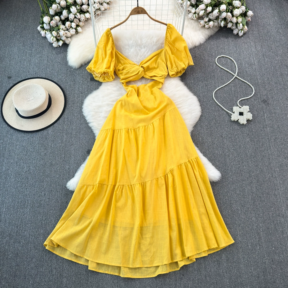 | nameOriginal | Hainan yellow beach skirt women's summer suspender backless travel photo |