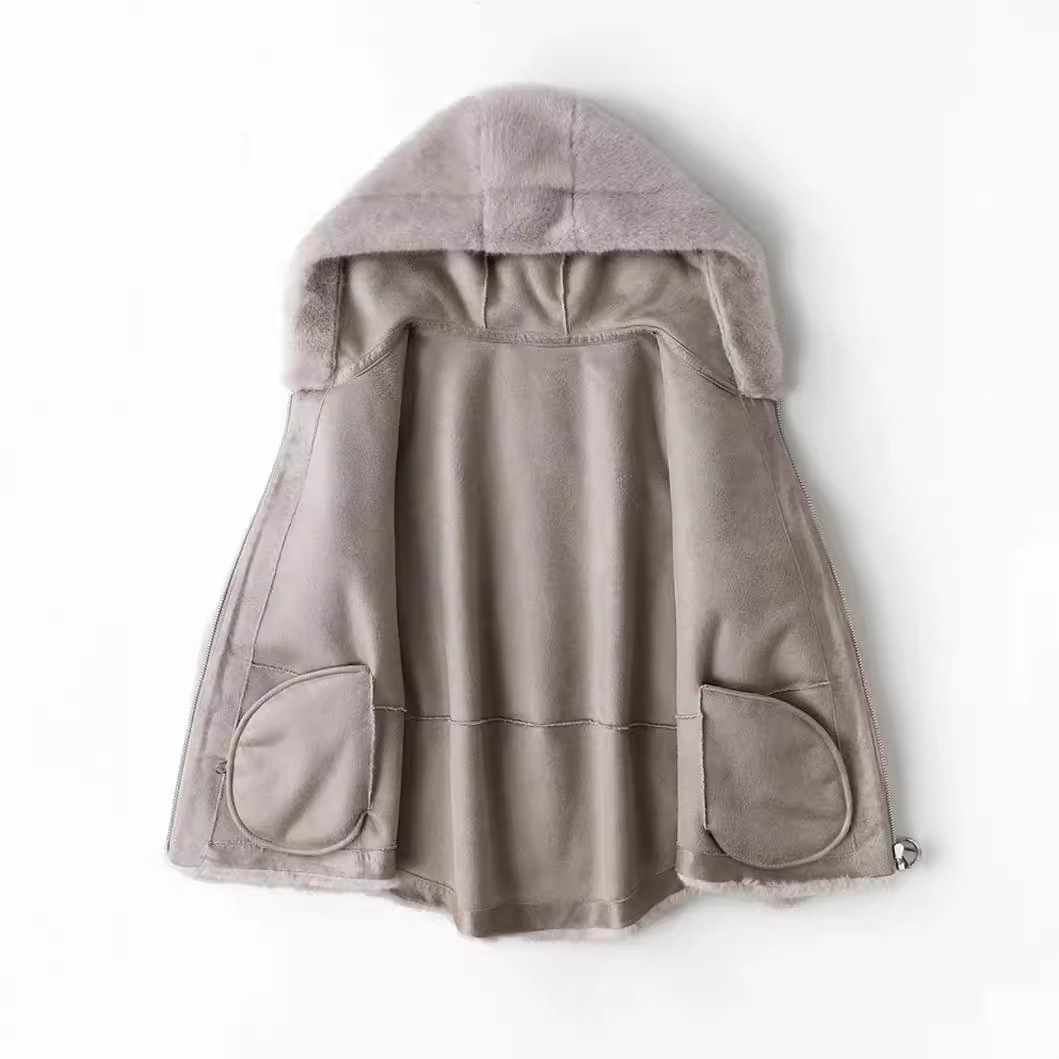 | nameOriginal | Haining 2024 autumn and winter new gold mink velvet coat women's short hooded ferret mink imitation fur coat |