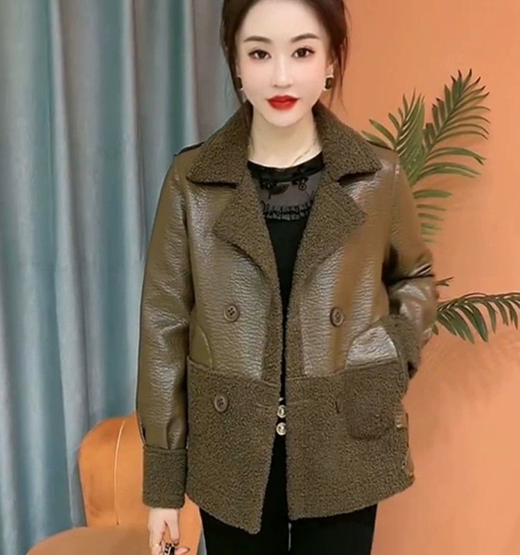 | nameOriginal | Haining autumn and winter fashion bow reversible leather jacket |
