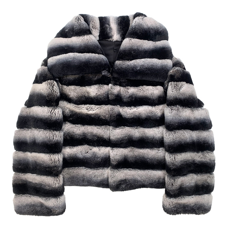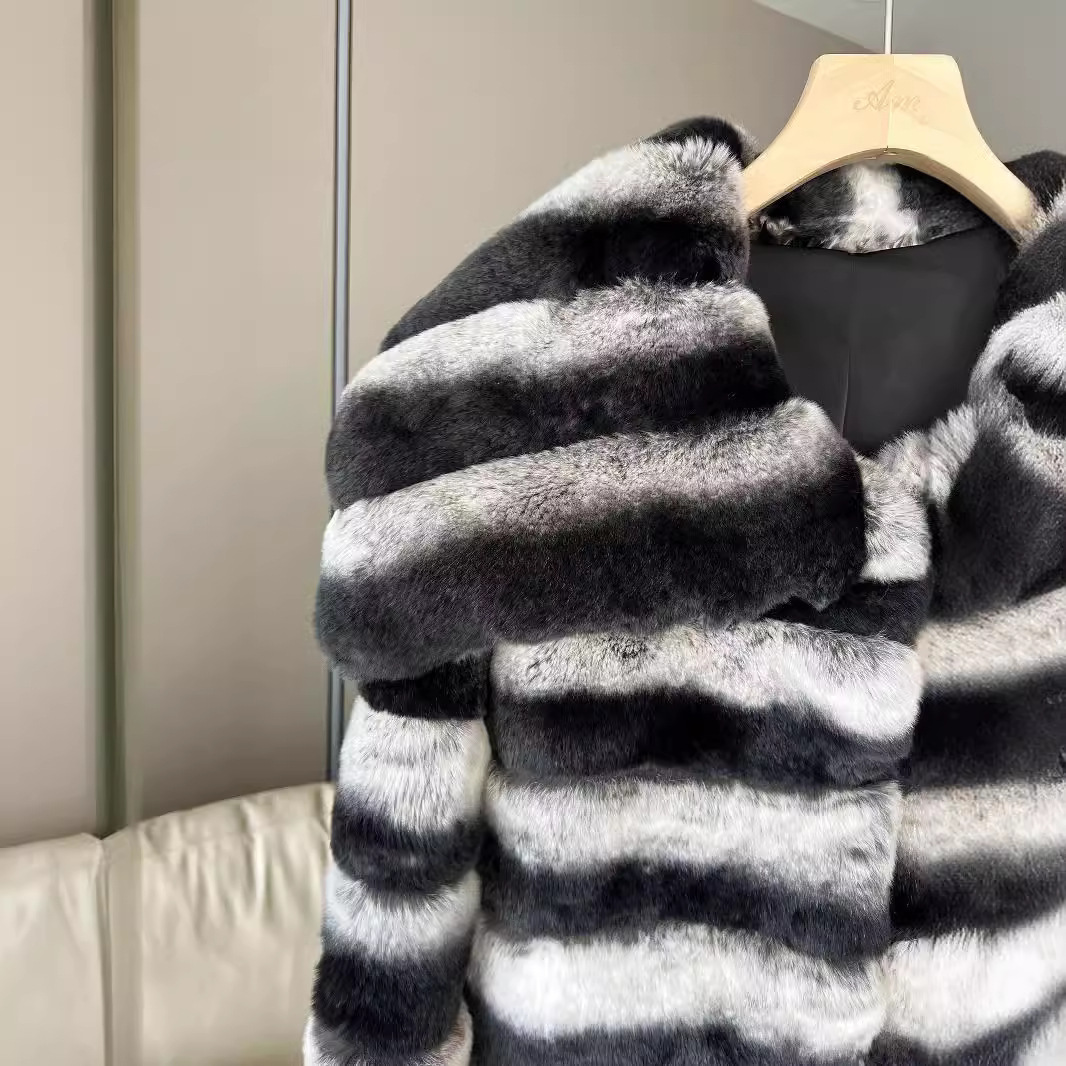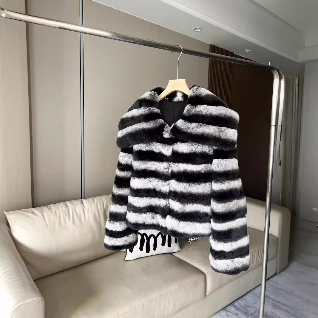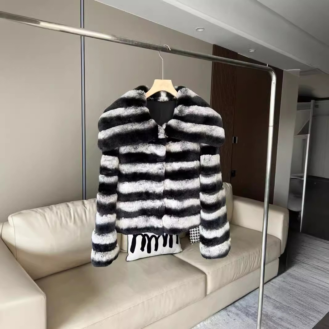 | nameOriginal | Haining "Fashion Totoro" Imported Rex Rabbit Fur Coat Women's 2024 New Elegant Striped Contrast Coat |