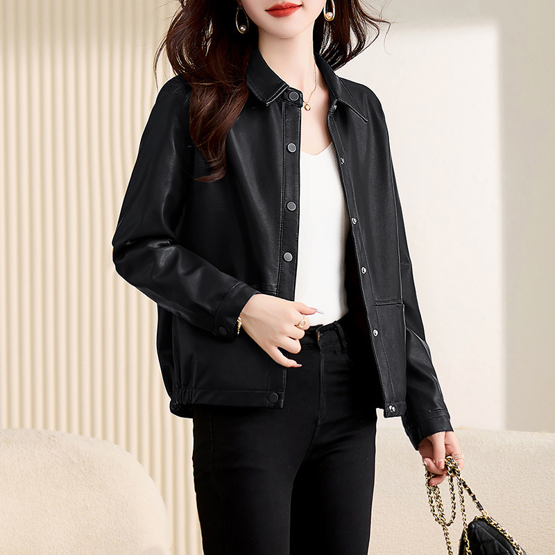 | nameOriginal | Haining Fashion Versatile Genuine Leather Coat Women's Short Spring and Autumn Sheepskin Motorcycle Lapel Leather Jacket Coat Women |
