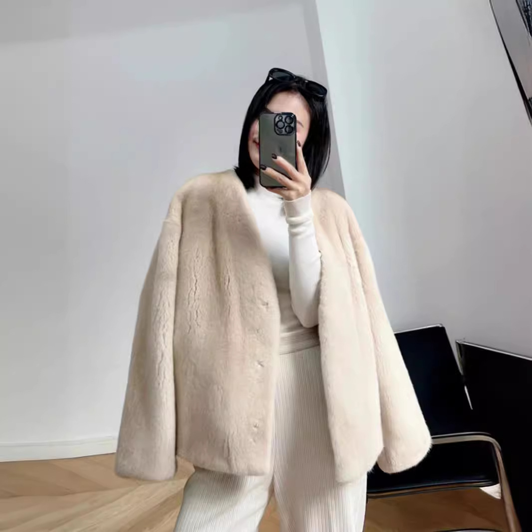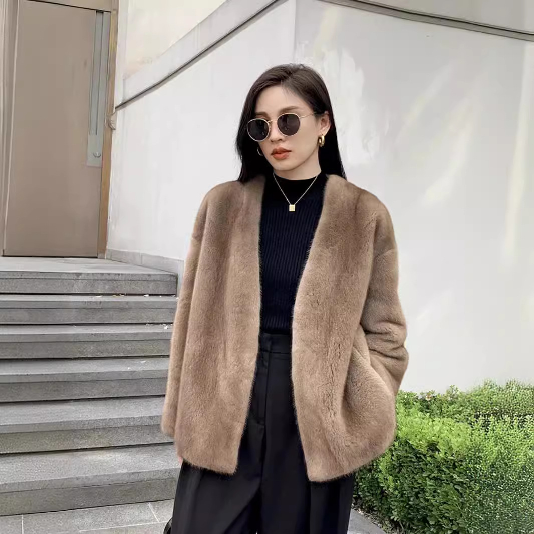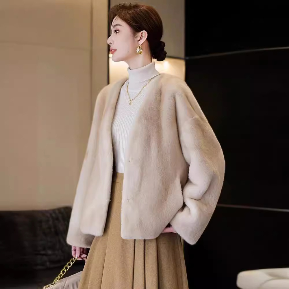 | nameOriginal | Haining Winter New Imitation Mink Fur Coat Women's V-Neck Simple One-Piece Elegant Fur Coat for Petite |