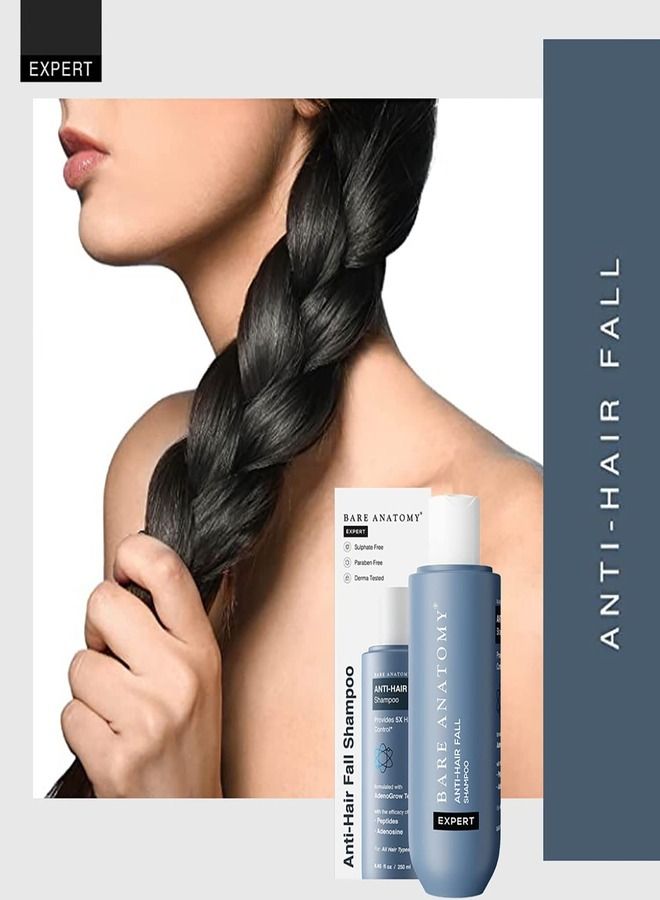 Introducing our Anti Hair Fall Shampoo, specially formulated to help you combat hair fall and promote healthy hair growth. With 5x hair fall control, this shampoo is enriched with biotin, adenosine, and peptides that work together to nourish your hair from the roots to the tips.